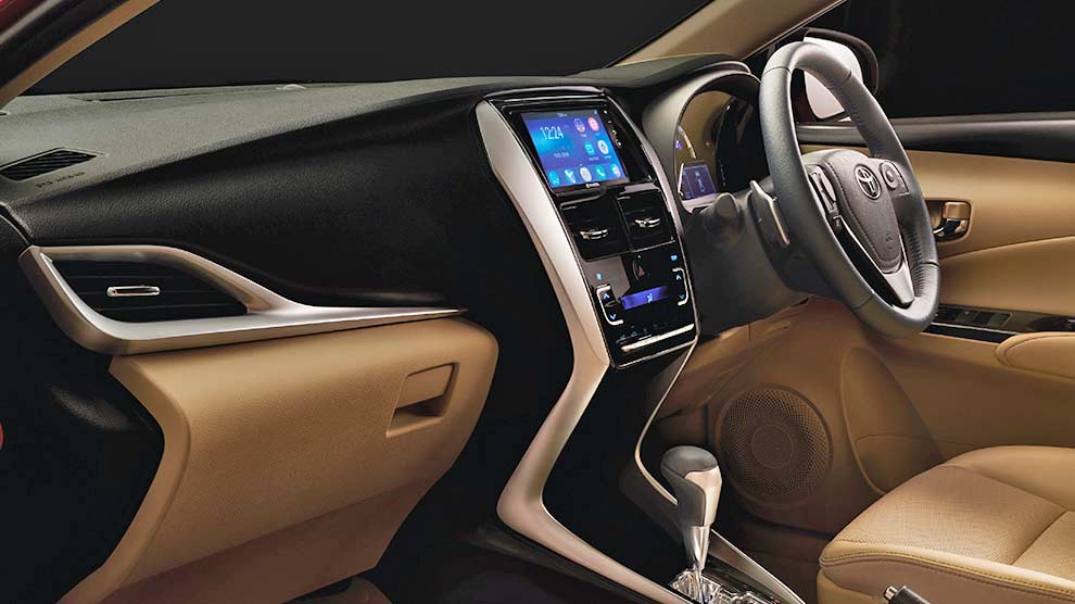 The Yaris was showcased at the 2018 Auto Expo near Delhi, earlier this year. On the exterior it gets projector headlamps with line guide, LED DRLs, rear combination lamps with line guide, front and rear parking sensors (claimed to be segment first) and 15-inch alloy wheels shod with 185/60 tyres.