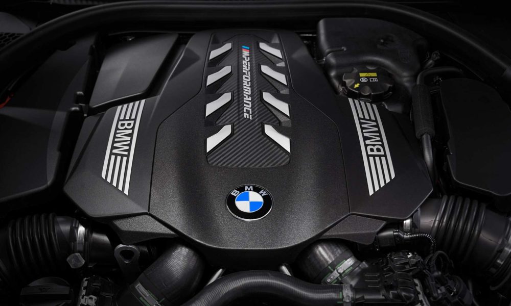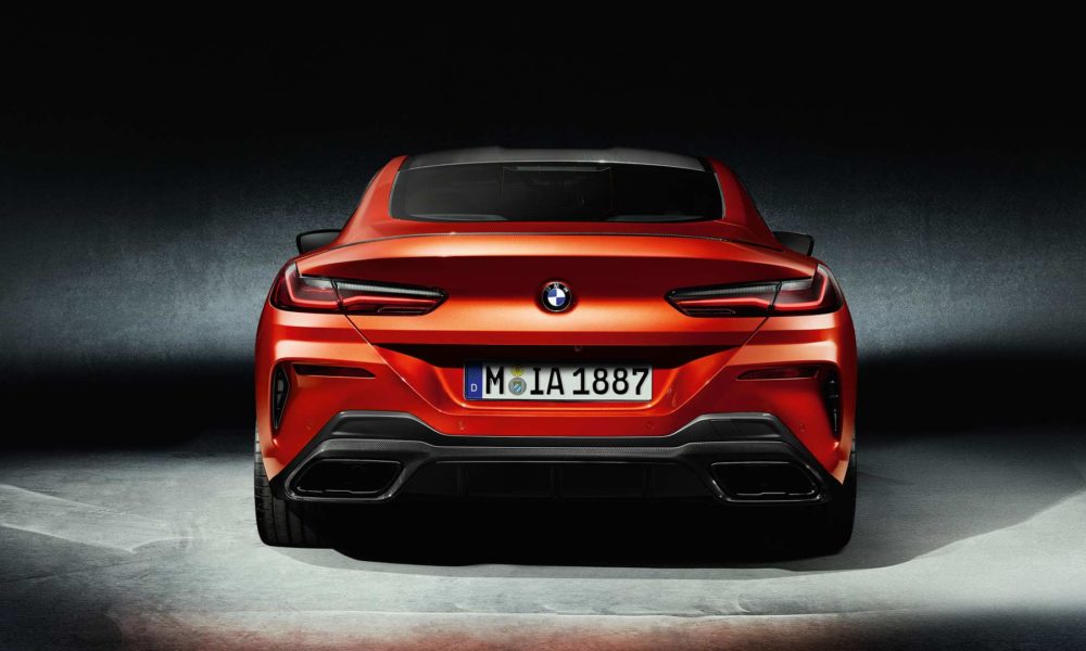 Exterior design features include slimmest LED headlights of any BMW model, single-piece kidney grille in new design language, “double-bubble” roof, slim LED taillights that extend into the flanks, M rear spoiler and large trapezoidal exhaust pipes.