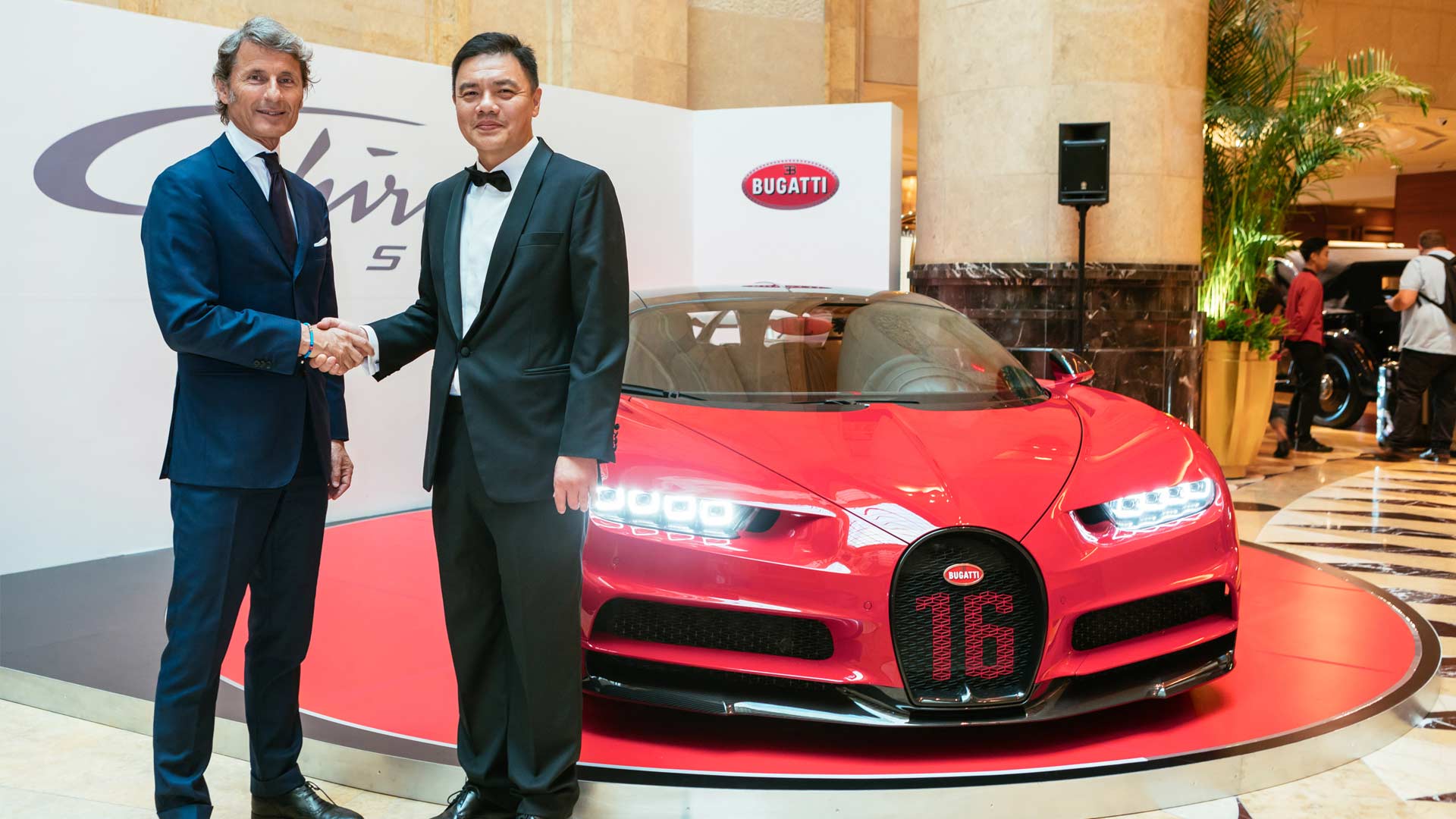 Bugatti celebrated the Asian premiere of the Chiron Sport at the Fullerton Hotel in Singapore. Bugatti President Stephan Winkelmann unveiled the updated Chiron with Pang Cheong Yan, Managing Director of the French luxury brand’s dealer in Singapore, Wearnes Automotive.