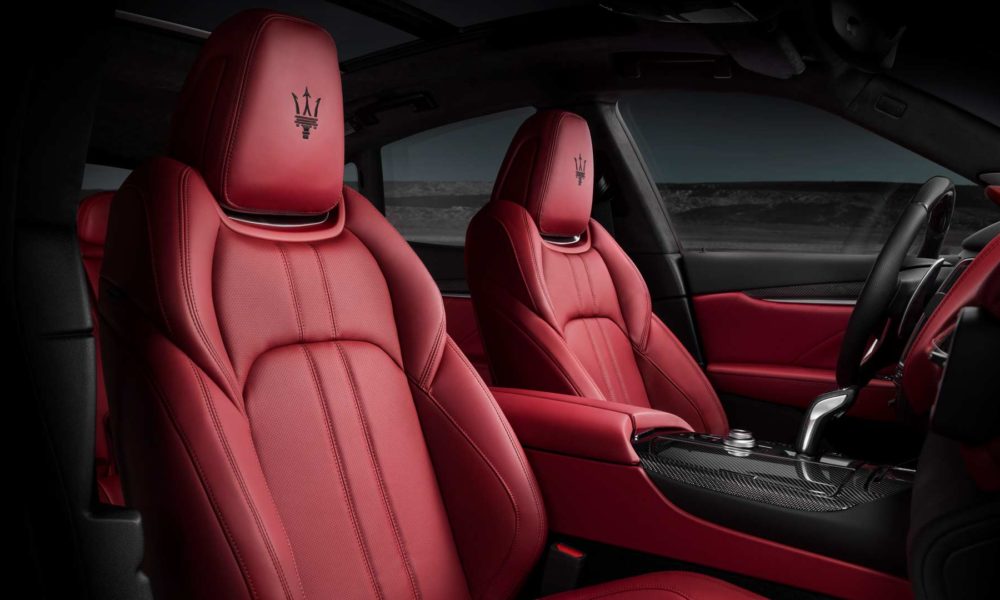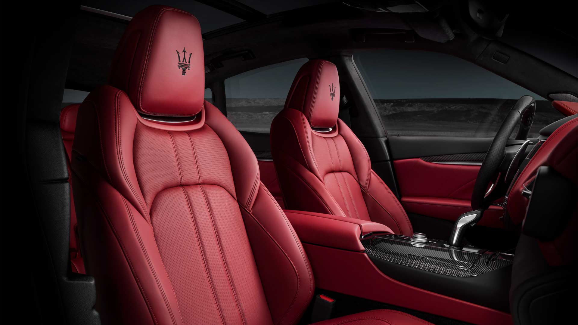 Interiors get heated and ventilated sports seats, heated sports steering wheel, aluminium paddle shifters, Alcantara headlining, 14-speaker Harman Kardon Premium Sound System, 8.4-inch Maserati Touch Control Plus (MTC+) with satellite navigation, Apple CarPlay & Android Auto connectivity, and some tastefully applied carbon fibre accents.