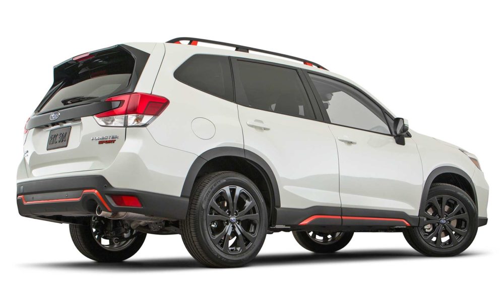 The 2019 Forester line up has a new Sport trim which comes with visual upgrades inside-out. It features gloss black accents on the fog light inserts, rear gate and front grille along with black 18-inch wheels and a rear roof spoiler. Orange accents add a youthful touch.