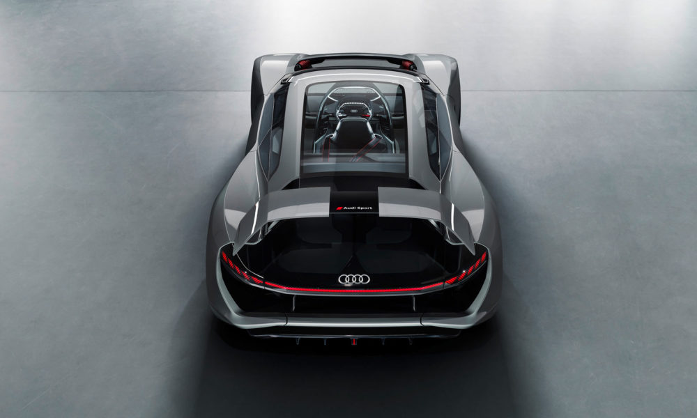 The internal working title for the concept was “Level Zero” – as an explicit way to differentiate it from the Levels 3, 4 and 5 of autonomous driving currently in focus at Audi. It is also engraved on the steering wheel here. There are no complex systems for piloted driving on board and no comfort features to add weight. The PB18 e-tron is all about the human driver.