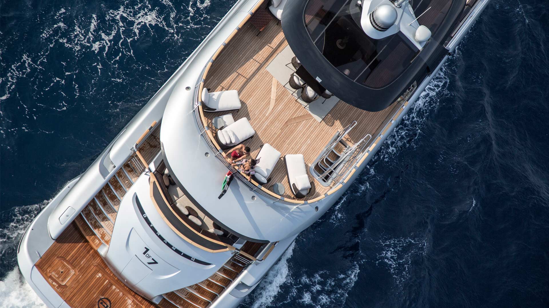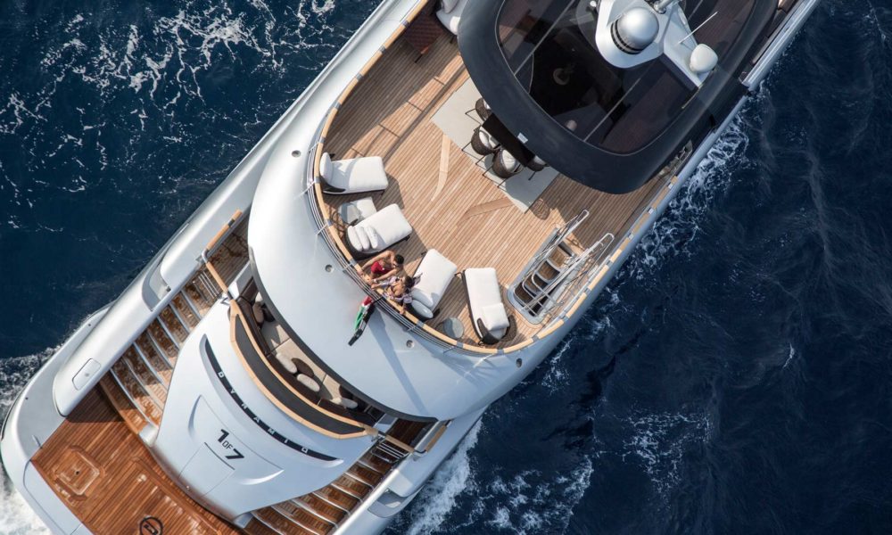 Dynamiq will build only 7 of these superyachts, and ‘1 of 7’ (pictured here) can be seen for real at the Super Yachts Extension of Cannes Vieux Port during the Festival.