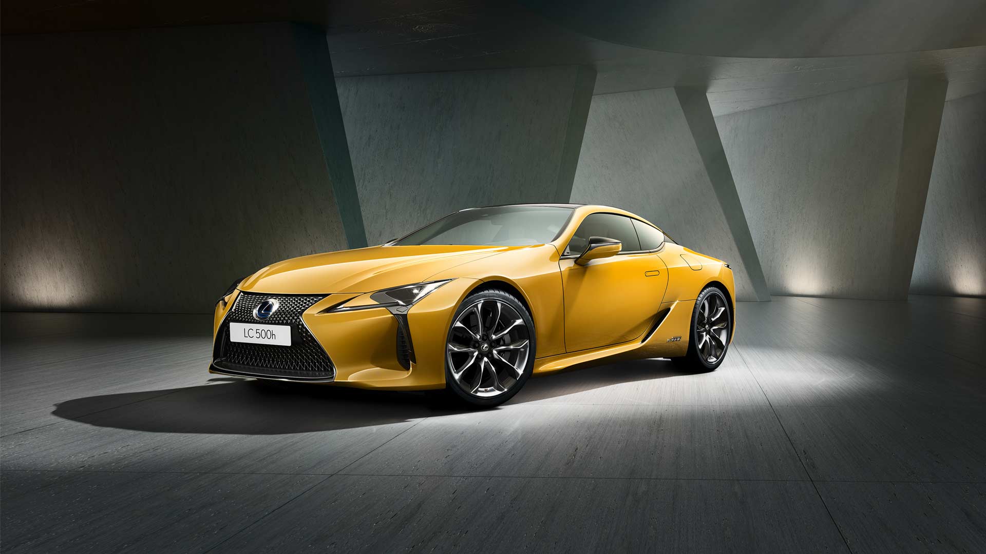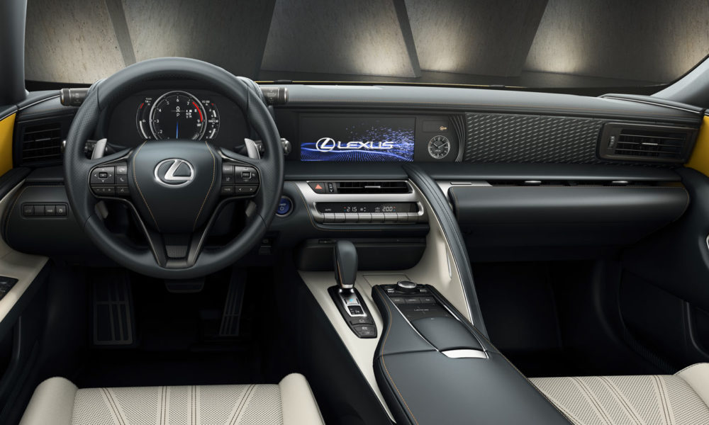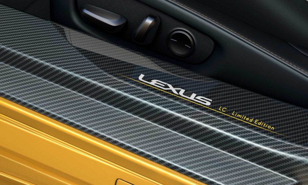 Although the Lexus LC debuted with a yellow color, the limited edition here sports a warmer Vibrant Flare Yellow paintwork. The Yellow Edition is offered on the Sport+ trim.