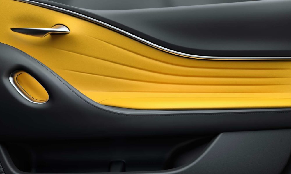 The special color theme continues through to the interiors, where the black door panels are enhanced by warm yellow Alcantara inserts. The warm yellow shade is also featured in contrast stitching details on the white leather seats, instrument panel, steering wheel and the arm rest, showcasing the takumi craftsmanship.