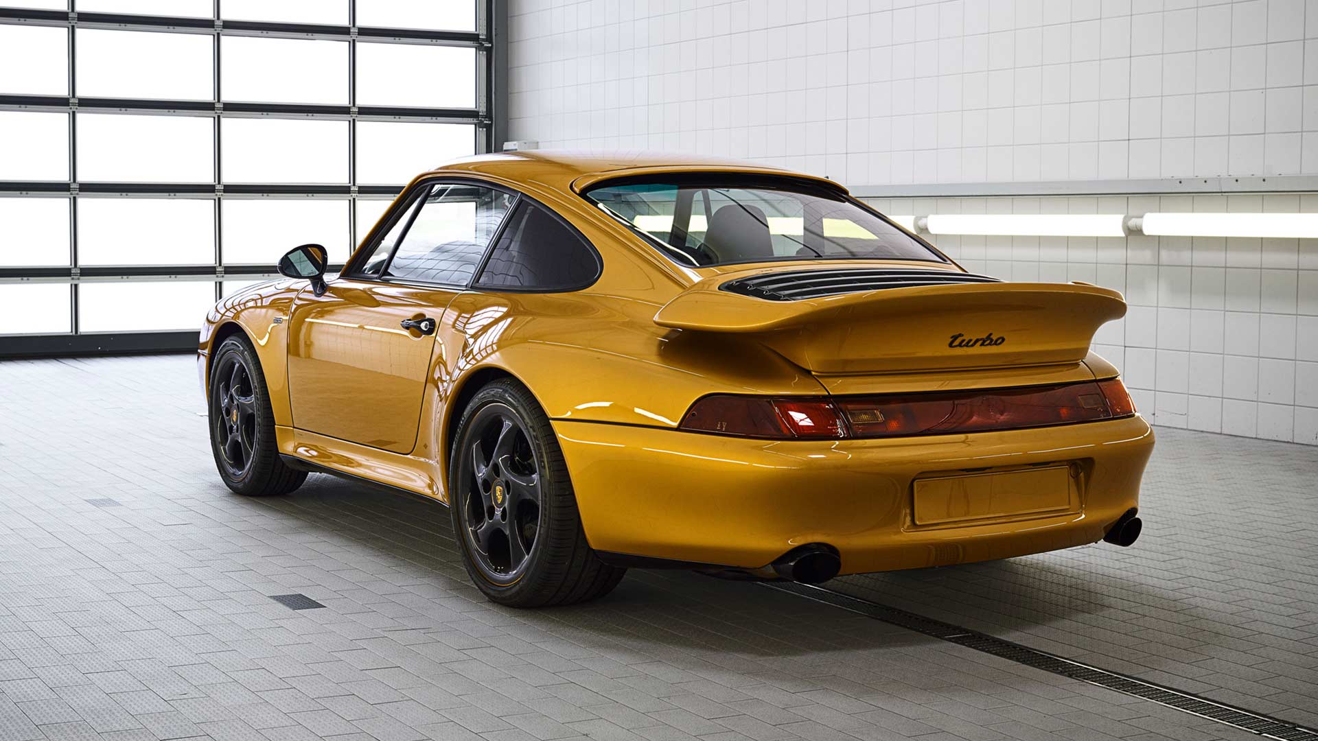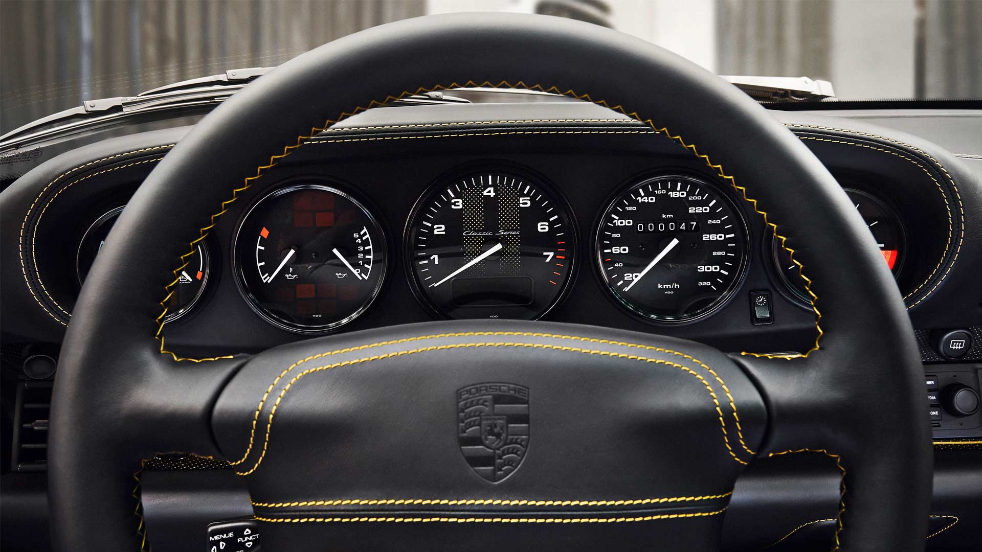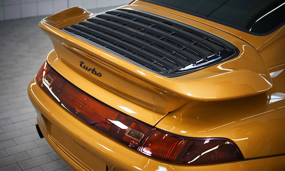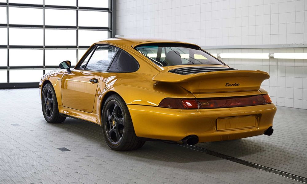 Aimed at car collectors, the classic 911 is based on an original bodyshell, and is painted in Golden Yellow Metallic – a reference to the 2018 911 Turbo S Exclusive Series. The black wheels are highlighted by Golden Yellow accents. Apparently, the construction took approximately one and a half years. Over 6,500 genuine parts from Porsche Classic were used to build this car.