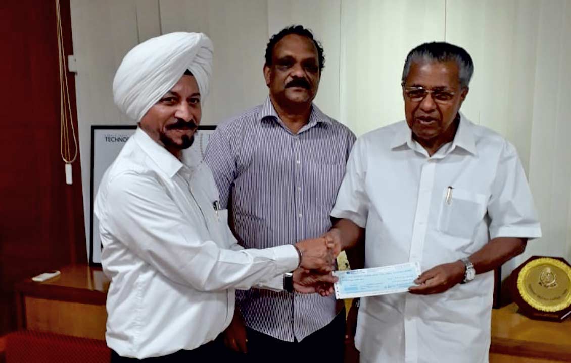The cheque was handed over to Kerala Chief Minister Mr. Pinarayi Vijayan by Swaran Singh, CEO, Srinivasan Services Trust (SST) – the social arm of TVS Motor Company in Thiruvananthapuram.