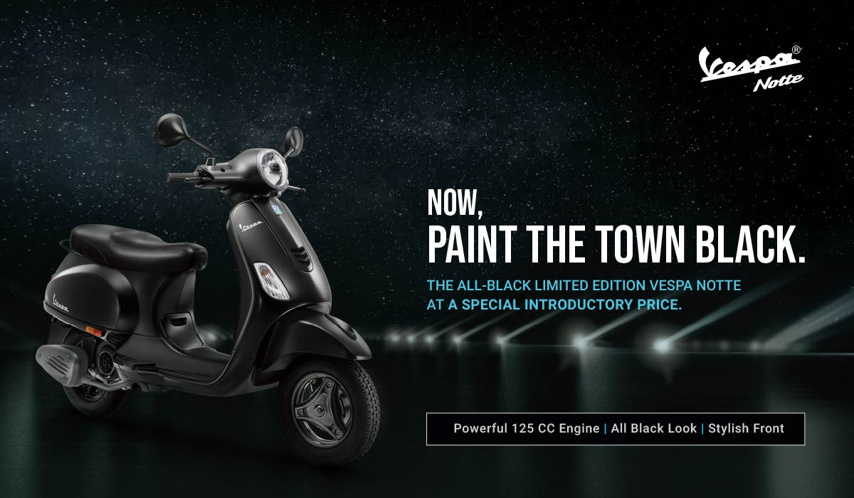 Piaggio India (PVPL) has launched the Vespa Notte limited edition model, priced at Rs 68,845 ex-showroom, Pune.