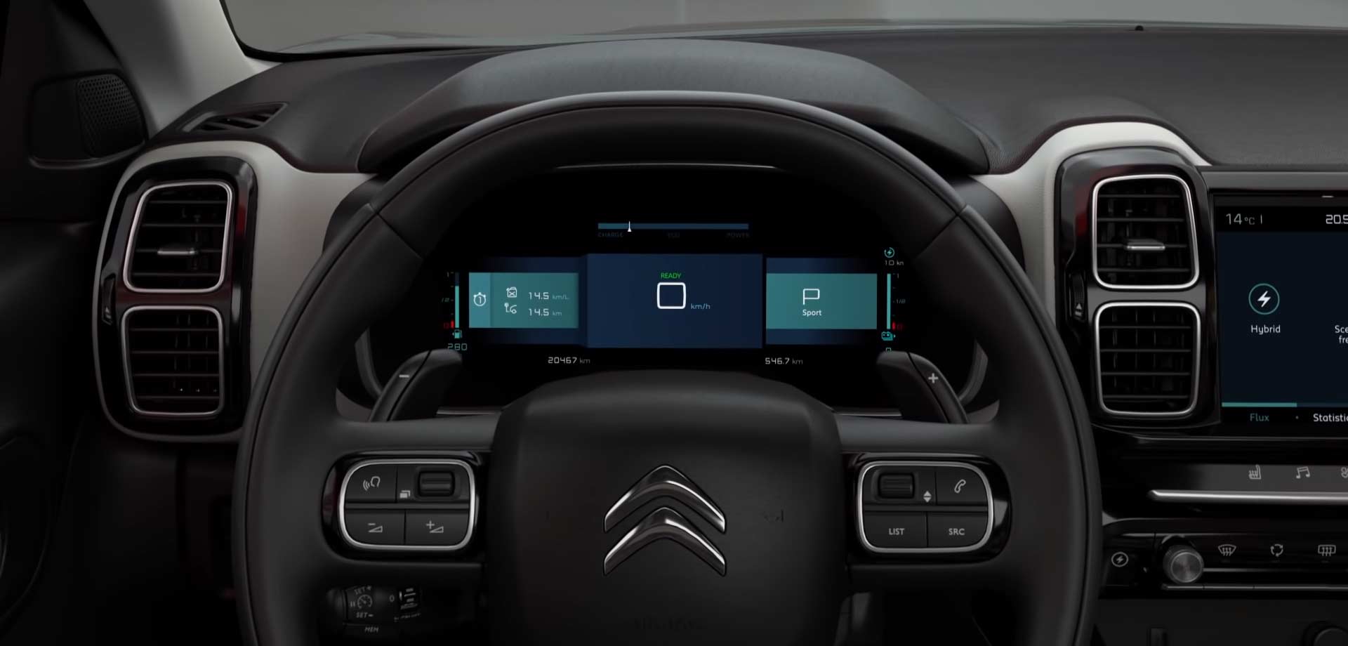 The left section appears to showcase how much range is left, both with fuel and in EV mode. Speaking of the EV mode, the Z.E.V. mode (Zero Emission Vehicle) here in the C5 Aircross gets you a range of 31 miles or about 50 km. As for the speed, the vehicle can go up to 83 mph or about 134 km/h in Z.E.V. mode.