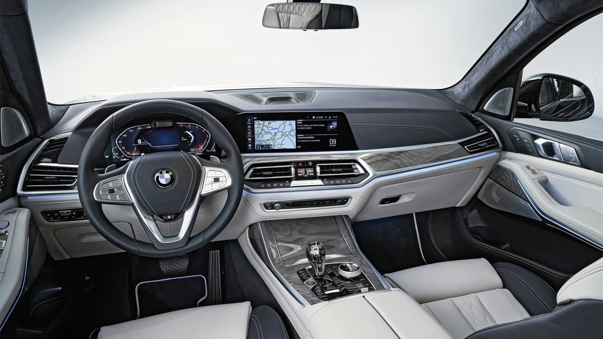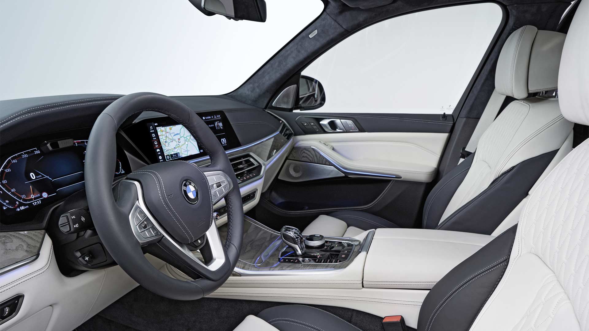The largest BMW X model measures 5,151 mm in length, 2,000 mm wide (2,218 mm with mirrors) and 1,805 mm tall, and has a wheelbase of 3,105 mm. Unladen ground clearance is at 221 mm.
