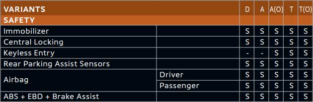 As for safety, the car comes with dual front airbags, ABS with EBD, Brake Assist, and reverse parking sensors as standard across the range.