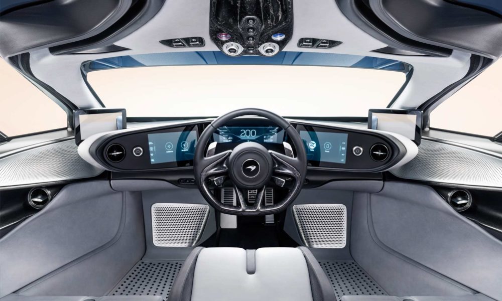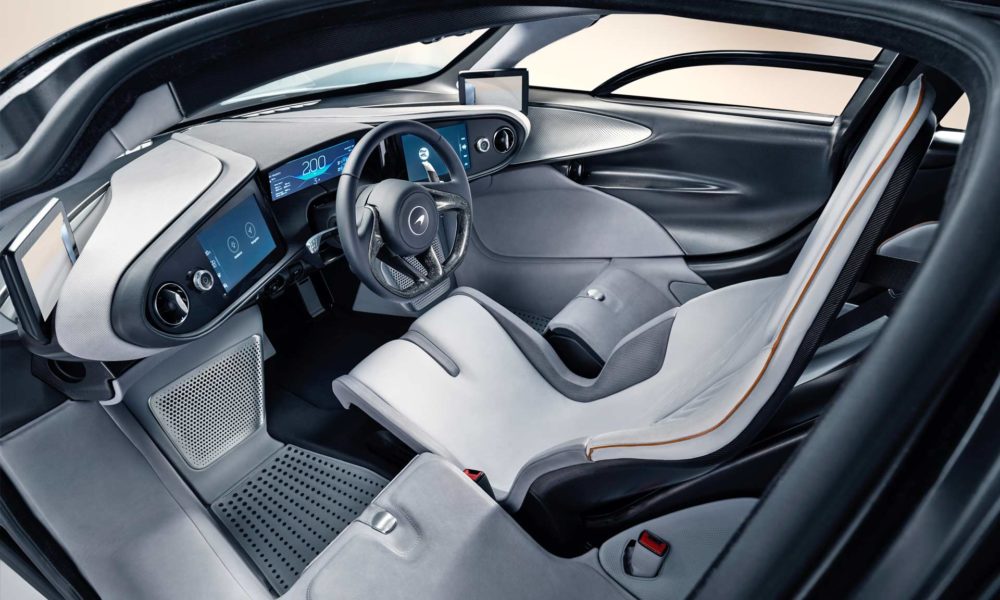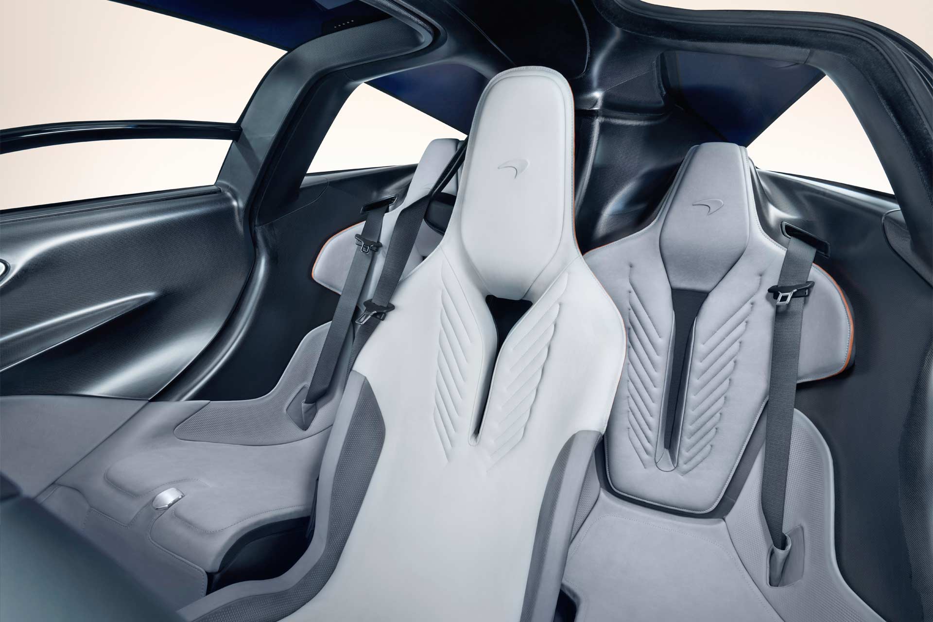 The Speedtail’s central driving position flanked by two passenger seats – a homage to the McLaren F1