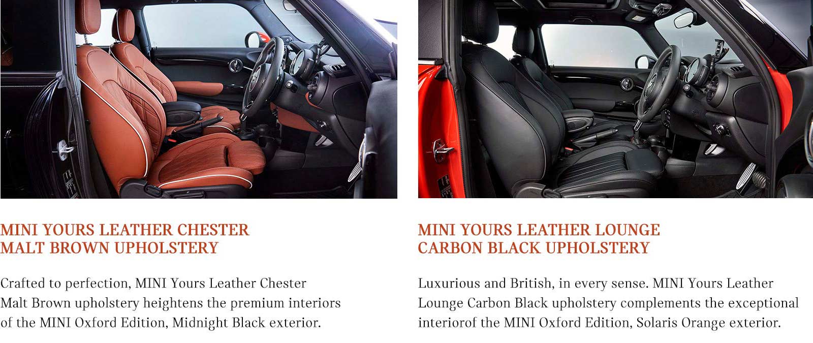 The Oxford Edition comes in two paint schemes – Midnight Black exterior with Solaris Orange roof, and Solaris Orange exterior with Jet Black roof. It also gets LED headlights, MINI Yours Customised 3D printed side scuttles, Customised LED door sills, Customised LED door projector, JCW aerodynamic body kit, piano black accents, 17-inch Track Spoke wheels with runflat tyres, panoramic glass roof, and LED union jack tail lights.