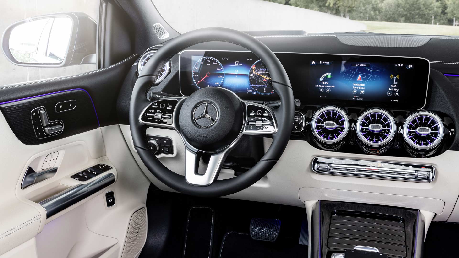 The driver sits 90 mm higher than in an A-Class, thus enjoying an especially good all-round view. The width of the new B-Class has grown by 33 mm which should translate into more space on the inside.