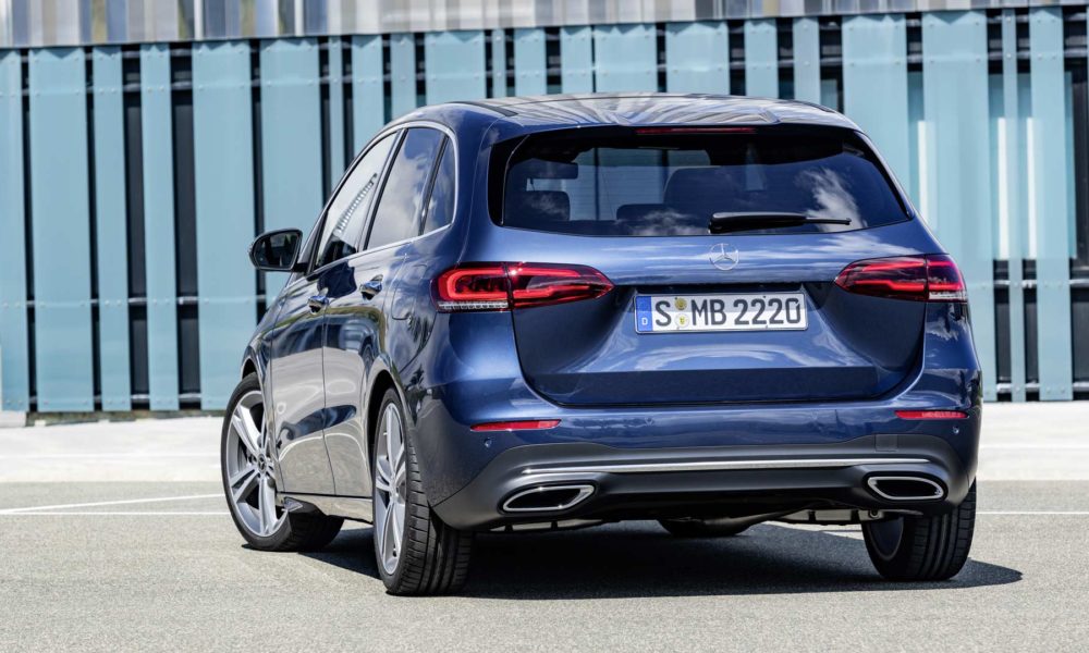 B 180 (100 kW/136 hp, 200 Nm), B 200 (120 kW/163 hp, 250 Nm), B 180 d (85 kW/116 hp, 260 Nm), B 200 d (110 kW/150 hp, 320 Nm), and B 220 d (140 kW/190 hp, 400 Nm). The first three variants are paired to a 7G-DCT dual-clutch transmission while the latter two are paired to an 8G-DCT.