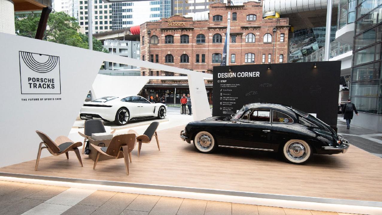 A 1962 Porsche 356 accompanies the Mission E. Porsche also confirmed that the all-electric Taycan (production version of Mission E) will be launched in Australia in 2020.