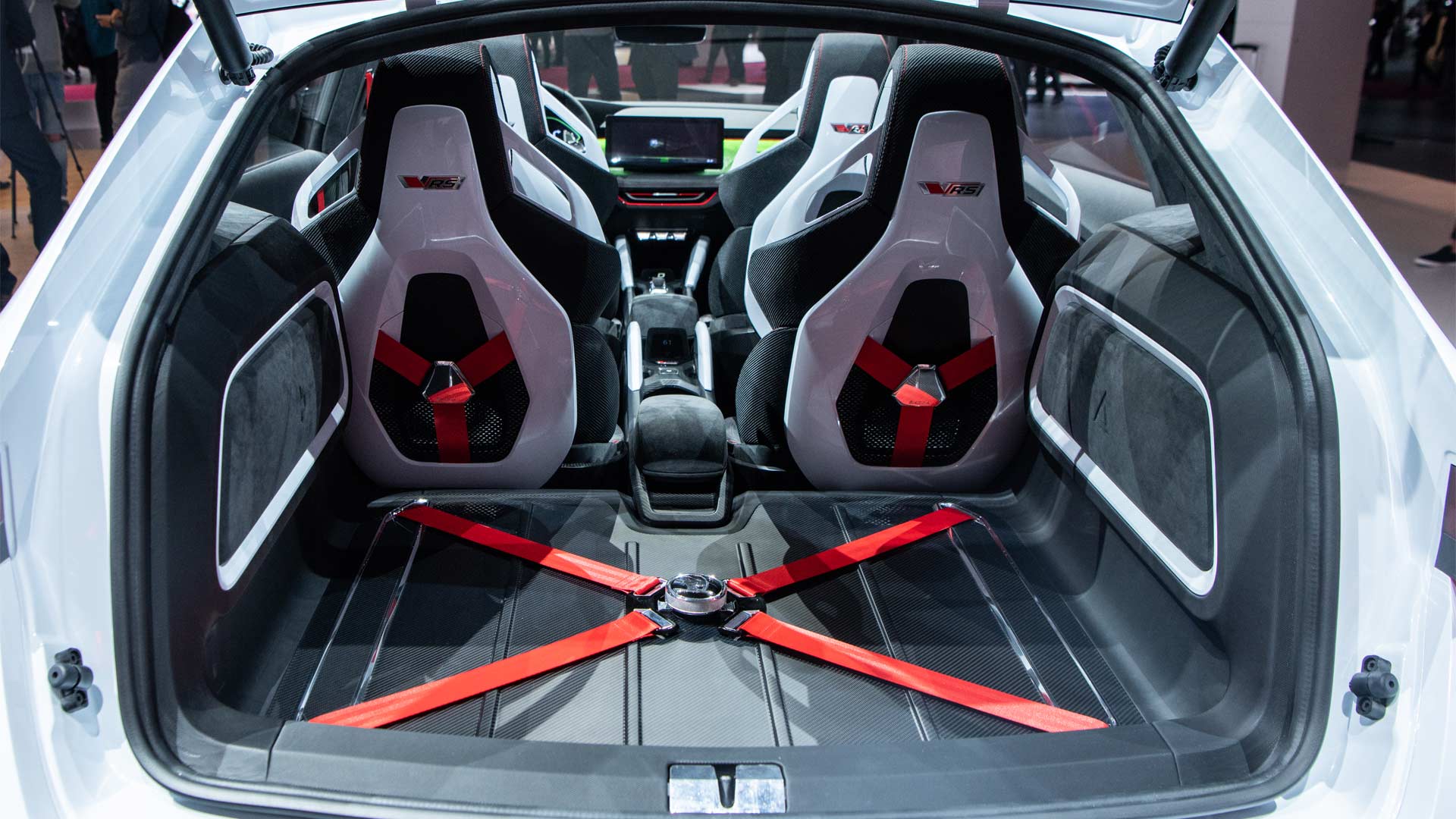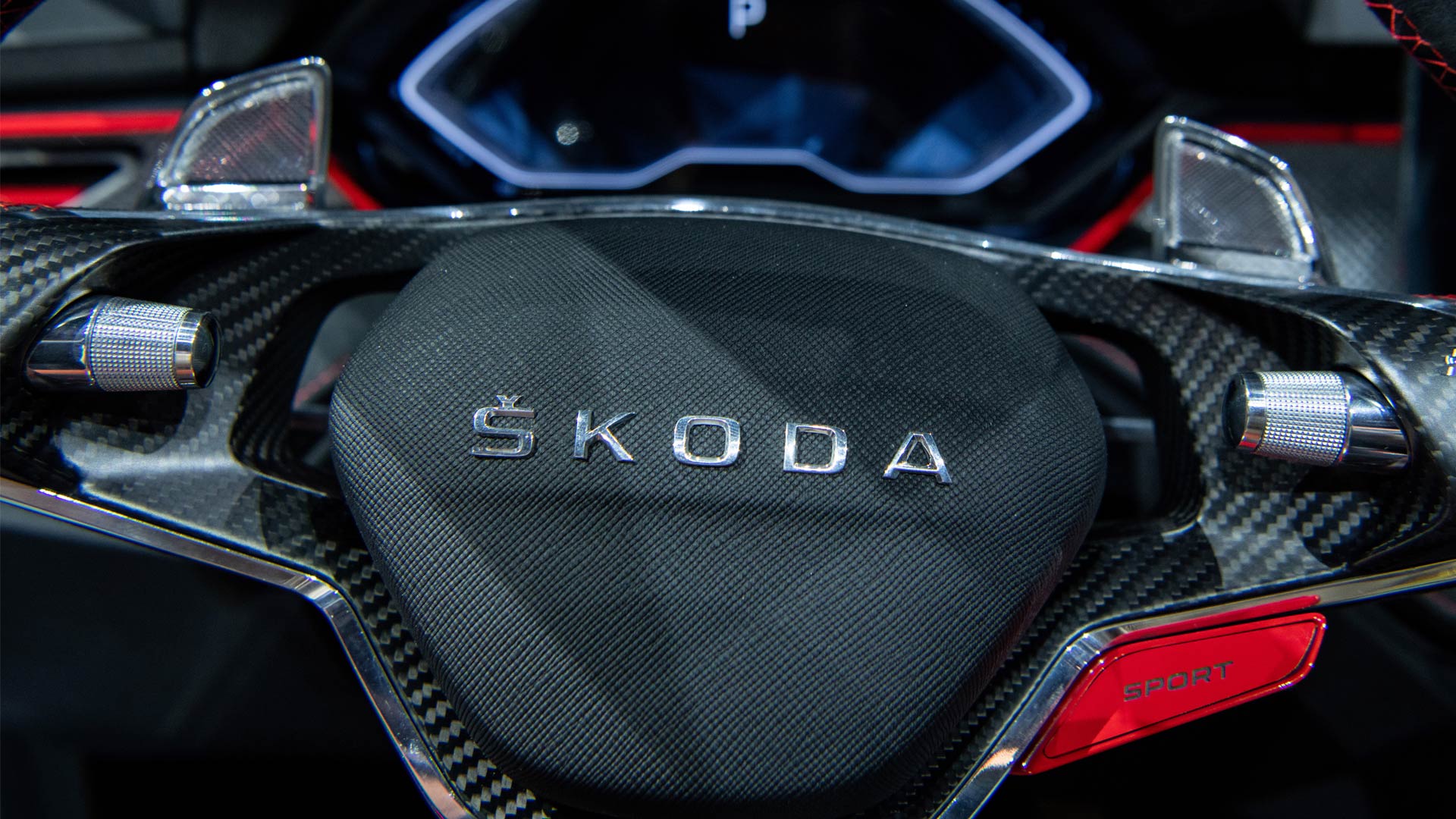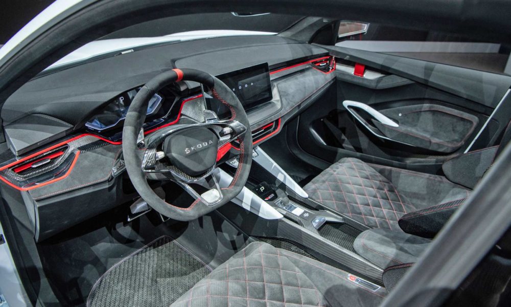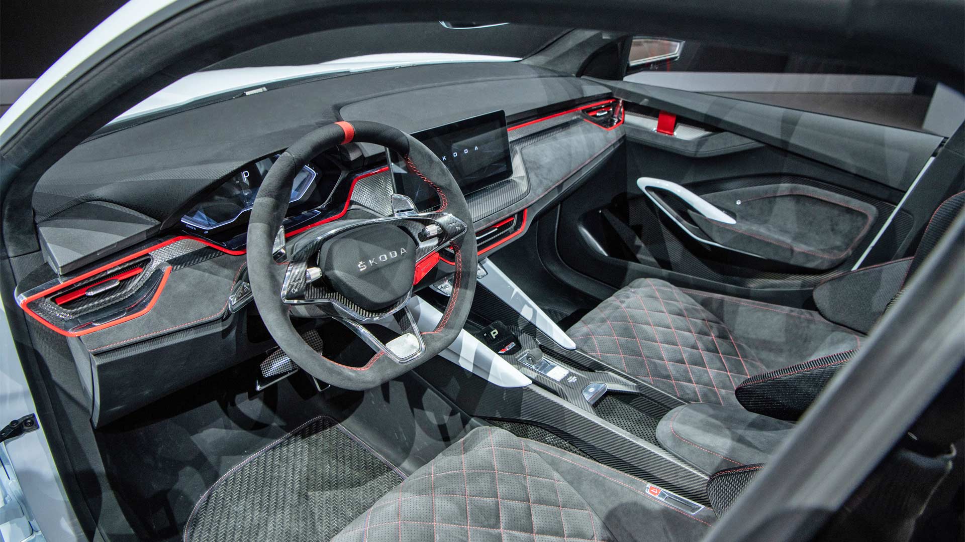 Skoda said that the carbon fibre is made from 100% recycled polyester and the seat covers are made from vegan Alcantara. The car also features Skoda Connect online services and in-car Alexa Voice service.