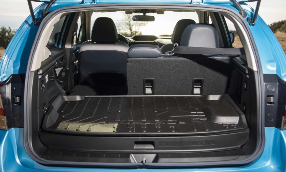 The 8.8 kWh lithium-ion battery located underneath the cargo area offers an all-electric range of 17 miles or about 27 km. Subaru claims a full range of 480 miles (772 km) when using both gas and electric power.