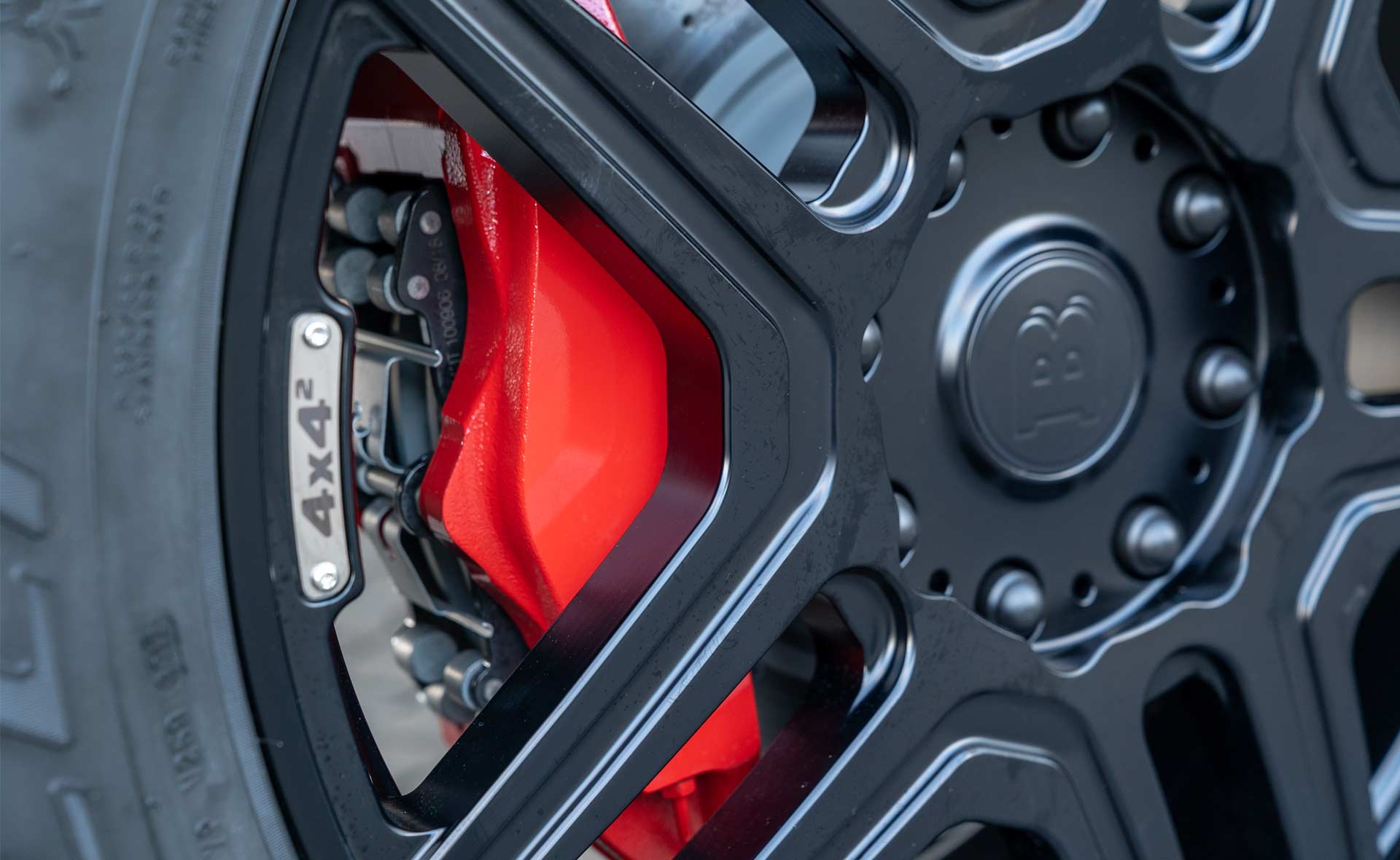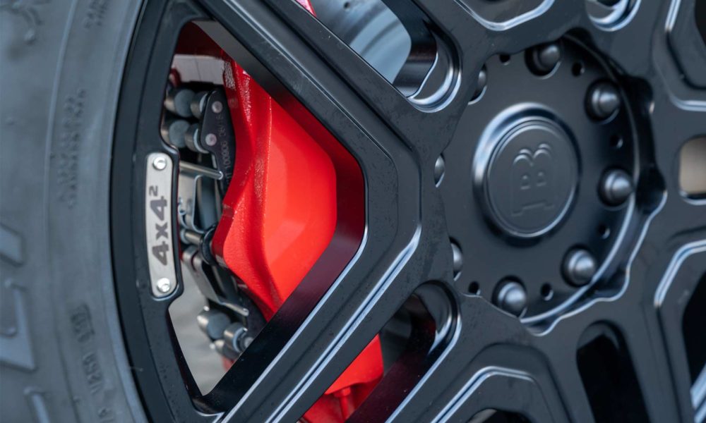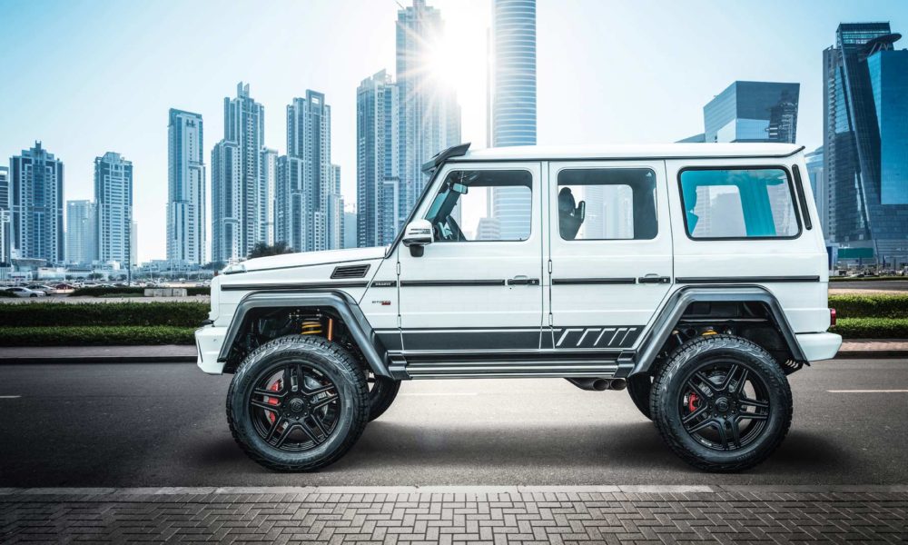 But don’t worry, Brabus has a solution in case you missed the original. The Brabus 700 4×4² we’re seeing here in the pictures, starts life as a previous generation G63. The regular axles are replaced with portal axles and an electronically adjustable suspension, which together give the 700 4×4² a 60 cm or 600 mm of ground clearance. The settings can be changed by the driver to suit their taste with a Touch Control Panel in the cockpit. The height-adjustable struts are made from high-strength aluminum and allow individual adjustment of the ride height at the front and rear axle.