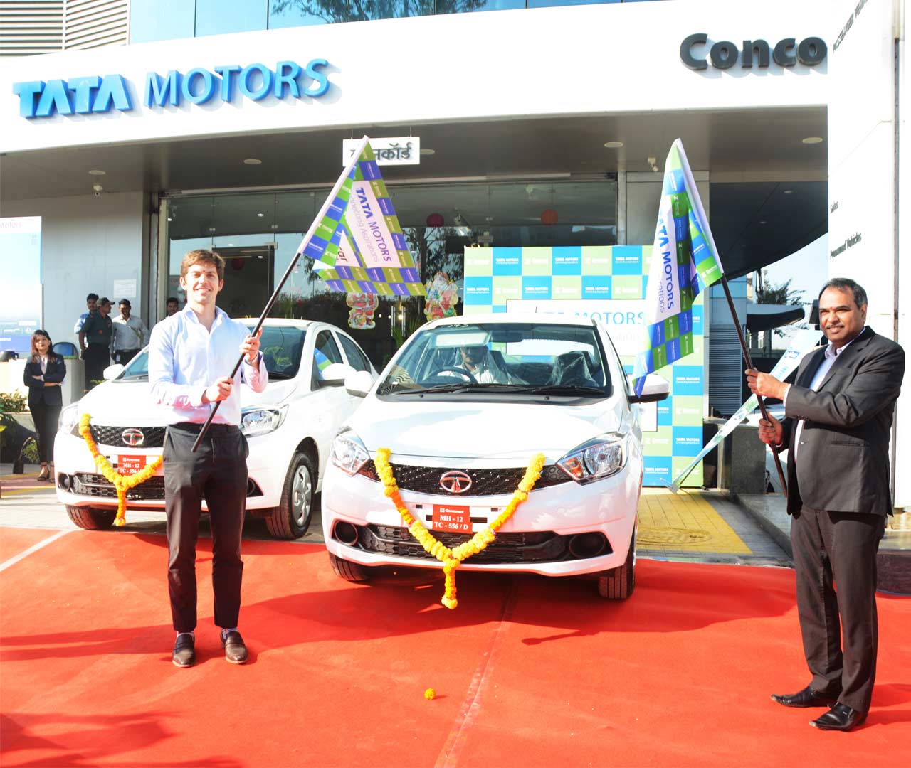 At a symbolic ceremony held in Pune, Shailesh Chandra, President – Electric Mobility Business & Corporate Strategy and Greg Moran, Co-Founder and CEO, Zoomcar flagged-off the first batch of Tigor EVs from Concorde Motors in Baner.