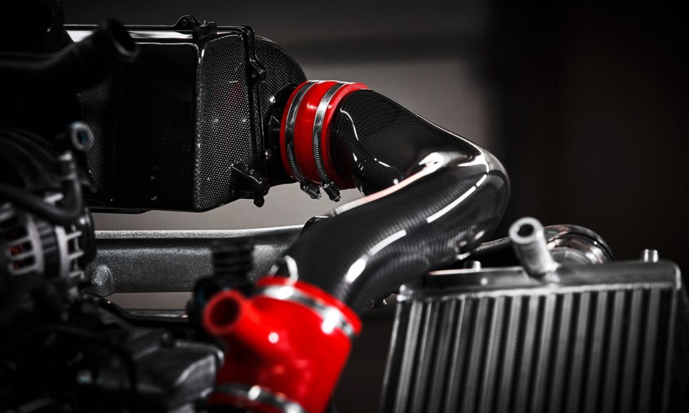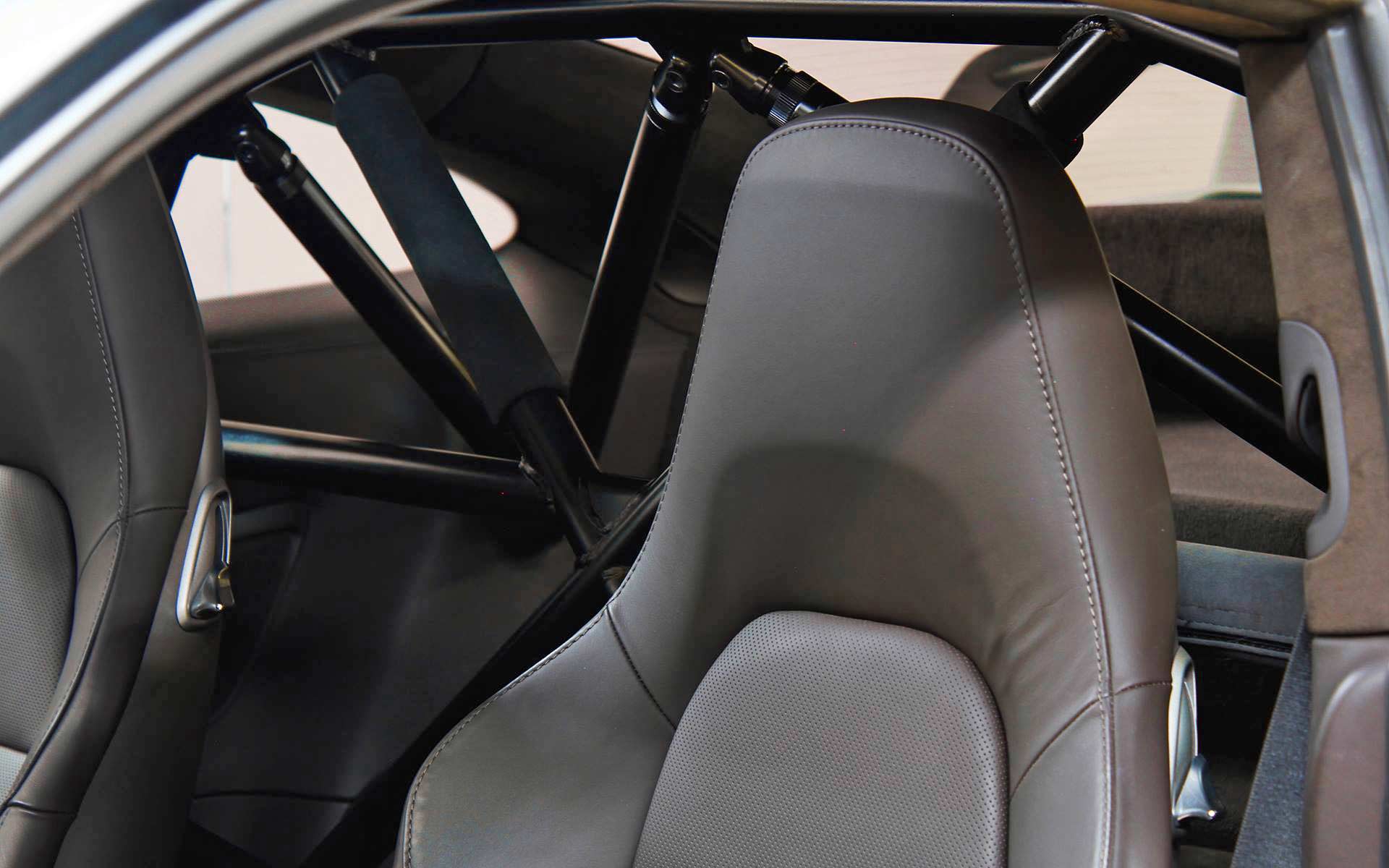 The interiors get carbon fibre inserts and tastefully applied red accents on the steering wheel. Rounding off the modification is a roll cage behind the seats.