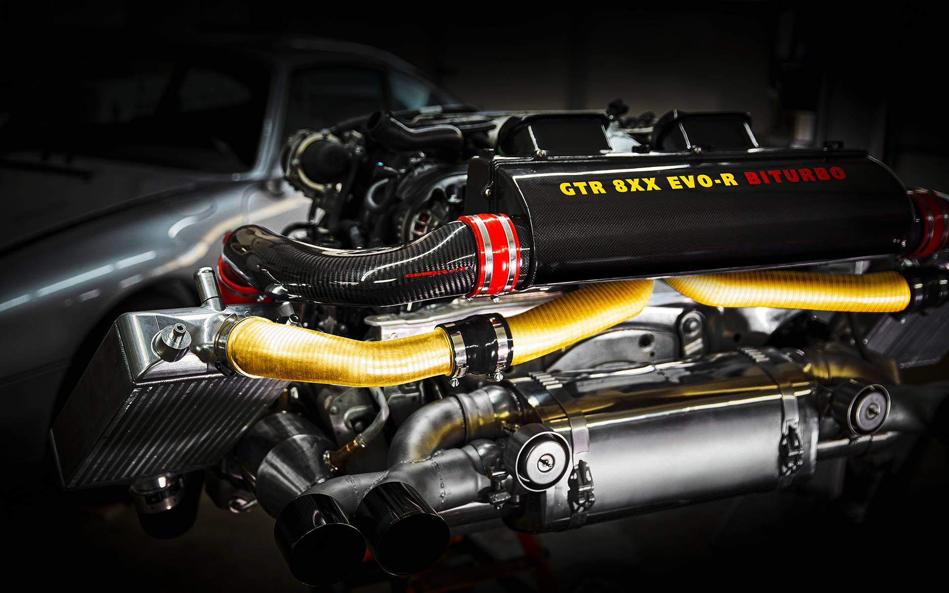 The GTR 8XX EVO-R as Gemballa likes to call it, gets a bodykit which includes front lip spoiler, louvres, rear wing, diffuser, and engine cover inserts, all made from carbon fibre. The Liberty Walk-like fender extensions widen the car by 30 mm on the front axle and by 50 mm at the rear.
