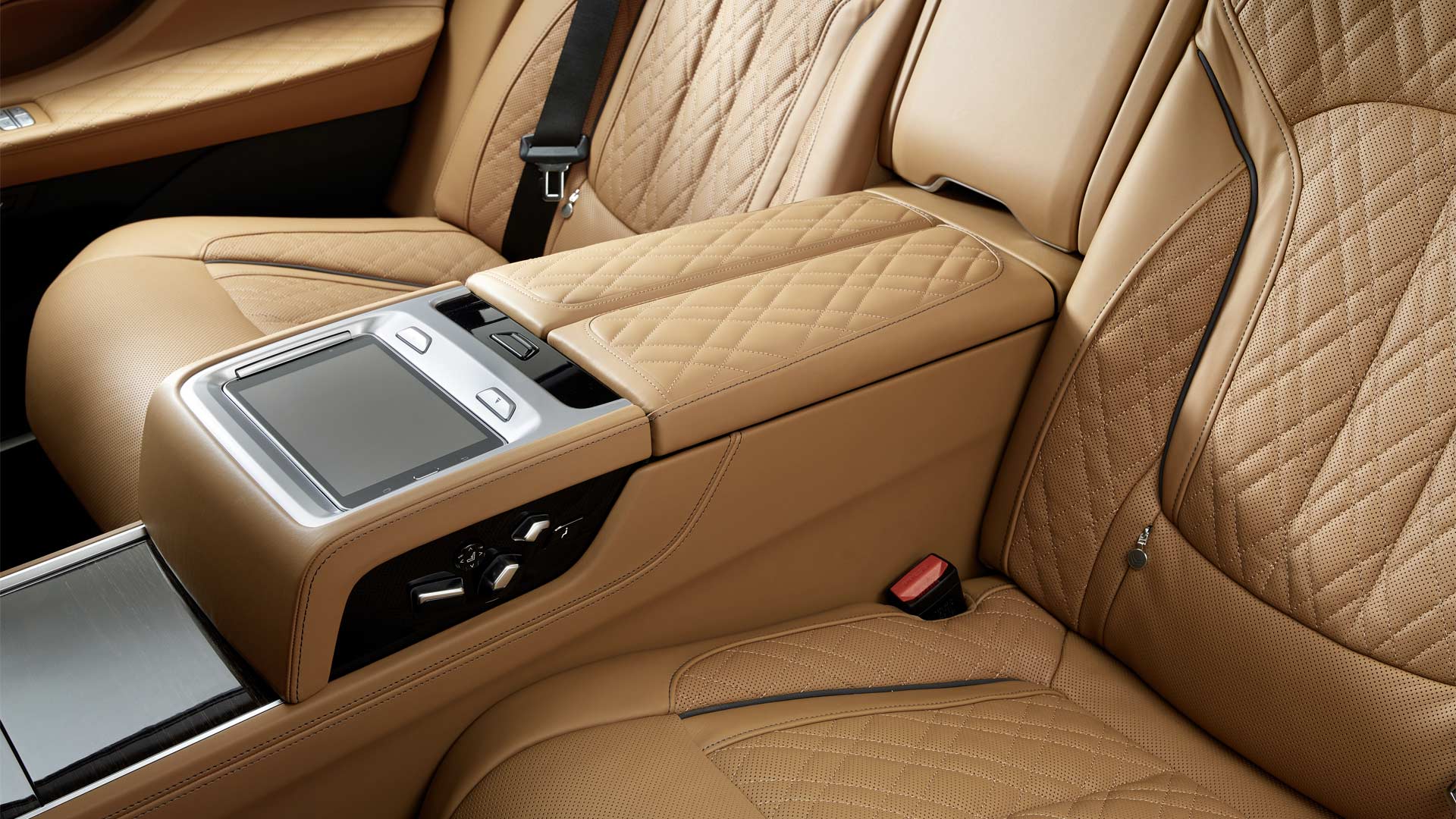The Rear-seat entertainment system comprises of two 10-inch full-HD displays complete with a Blu-ray player. Being a flagship model, the new 7-Series offers several design packages for the buyer to suit their tastes. The materials include Alcantara headliner, Anthracite headliner, brushed aluminium accents, Nappa leather upholstery, fine-grain Merino full leather trim, American Oak Dark with metal inlays, Poplar Grain Metallic Grey high-gloss, Fineline Black wood trims and more.