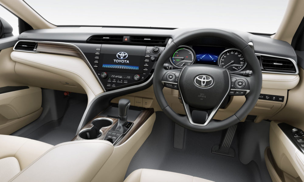 The interior of the new Camry is luxurious enough to put a Lexus badge. The dashboard gets an elegant stone grain and metallic texture finish along with beige leather upholstery. The feature list includes 10-way power-adjustable driver & passenger seat with lumbar support (driver seat with memory), ventilation for front seats, power tilt & telescopic steering column with memory, 3-zone climate control, 8-inch touchscreen infotainment with navigation, Head-Up Display, cruise control, 9-speaker JBL audio system, Qi wireless charging, tilt & slide moonroof, rear power sunshade, adjustable rear seats and touch controls on the rear armrest.