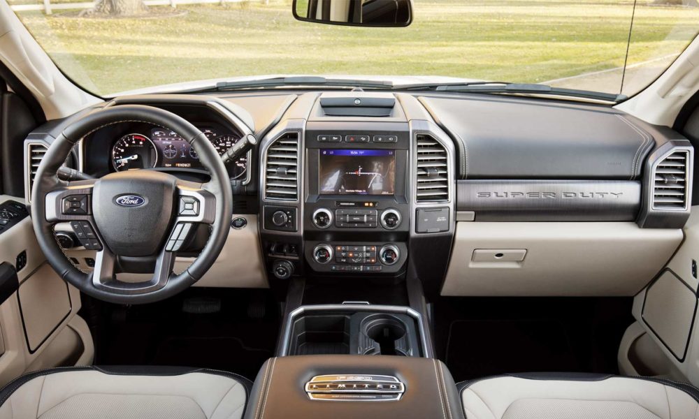 For 2020, the F-Series get Pro Trailer Backup Assist which helps the drivers easily steer the trailer via the reverse camera. Also included is FordPass Connect embedded 4G LTE modem with Wi-Fi access for up to 10 devices, wireless charging and USB-C ports. Pre-Collision Assist with Automatic Emergency Braking are standard on XLT and above Super Duty models. Options include lane-keeping alert and Blind Spot Information System with trailer coverage.