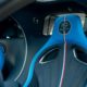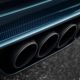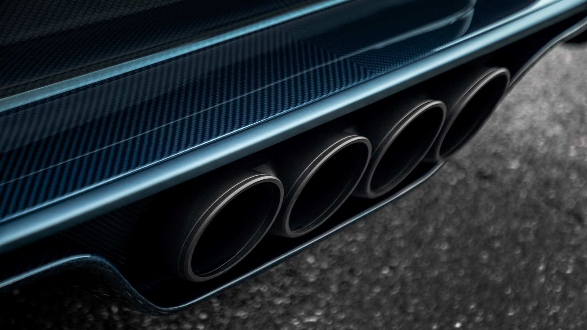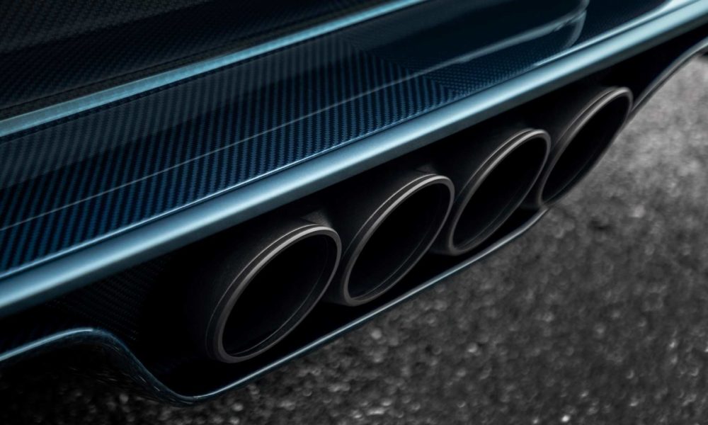 The body and the front end are made from carbon fibre, while the radiator is from aluminium. The rear bumper and diffuser are made from carbon as well. Most of the body including the “C” has matt Steel Blue paintwork, except the rear-end getting a gloss finish. The matt black sports exhaust system adds a subtle contrast. The wheels are finished in Nocturne matt black with the calipers painted in bright blue / French Racing Blue.