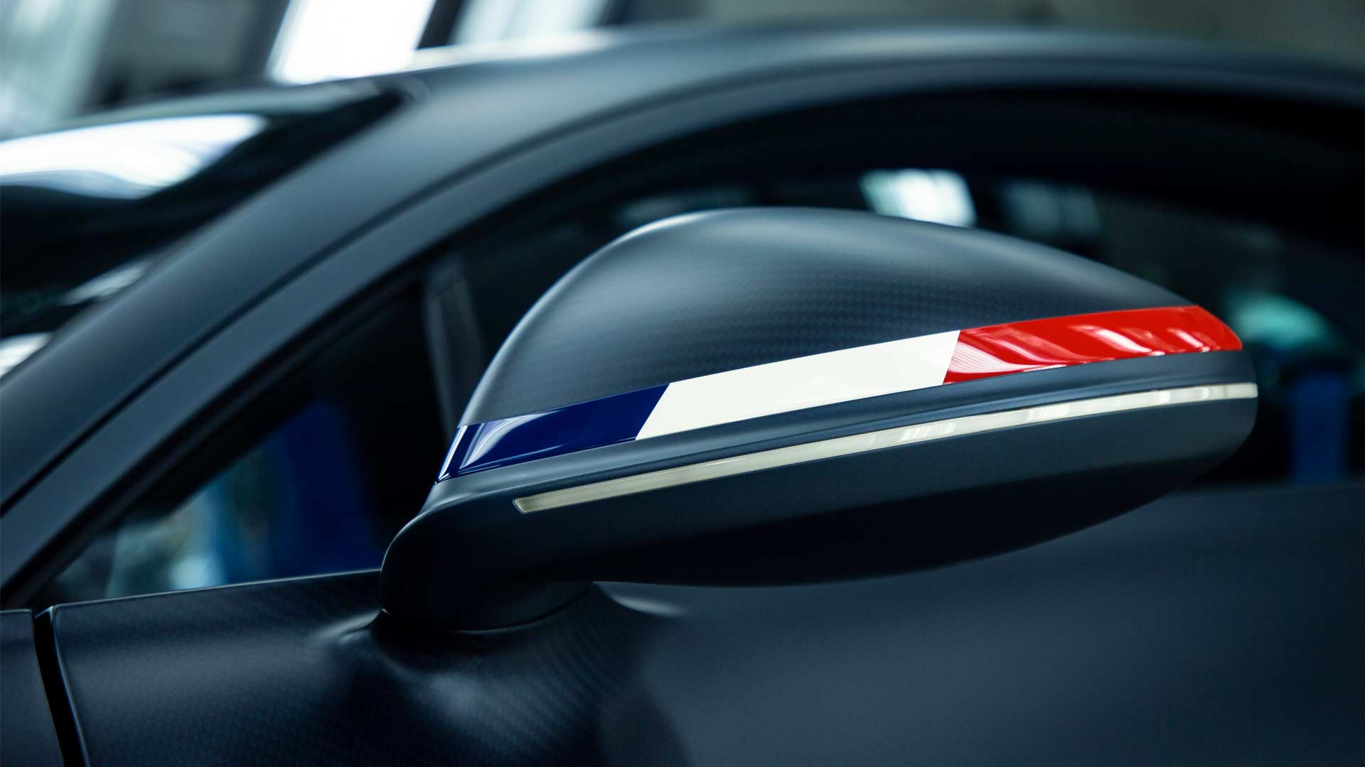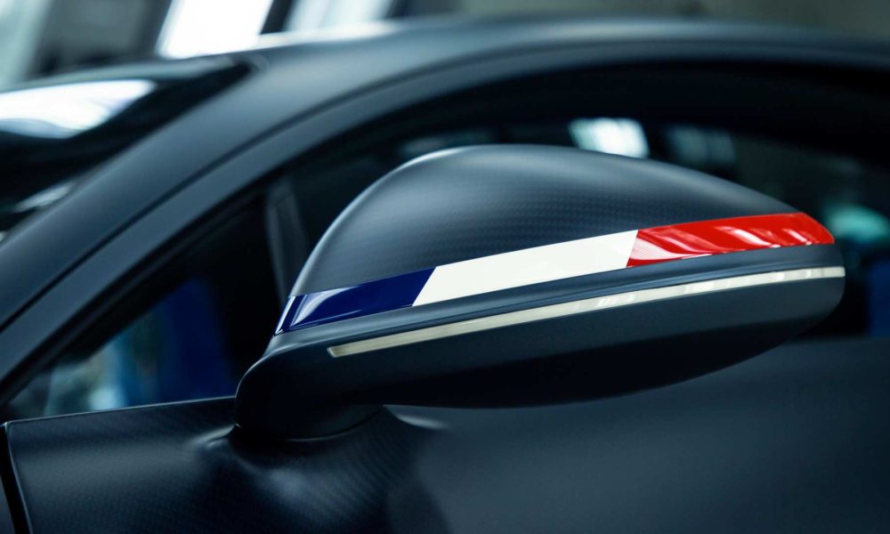 As we can see in the pictures, the special edition is all about oozing the love for France. The French tricolour Bleu-Blanc-Rouge (blue, white and red), have been applied tastefully on the mirrors and the underside of the rear spoiler. The flag also features on the sandblasted & hand-polished aluminium filler cap with 110 ans Bugatti emblem.