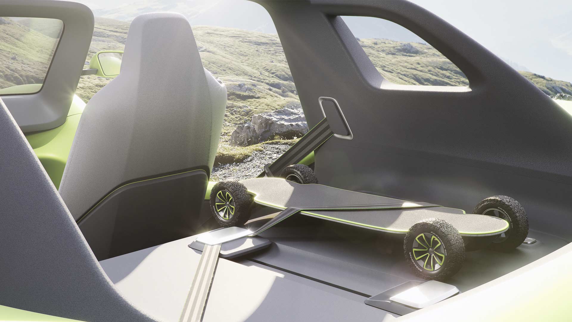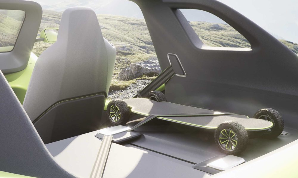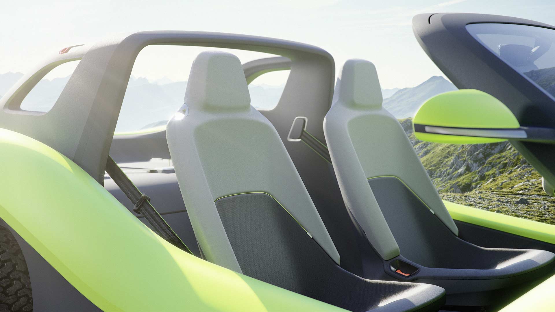 The interior is minimal too and is finished with waterproof materials. The concept is a pure 2-seater, however, the ID. Buggy can also be converted into a 2+2-seater.