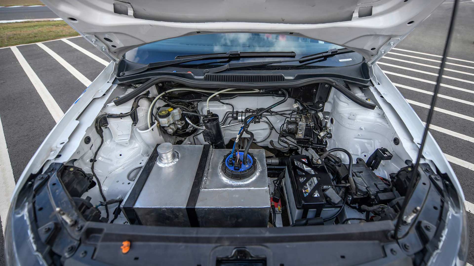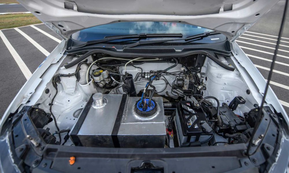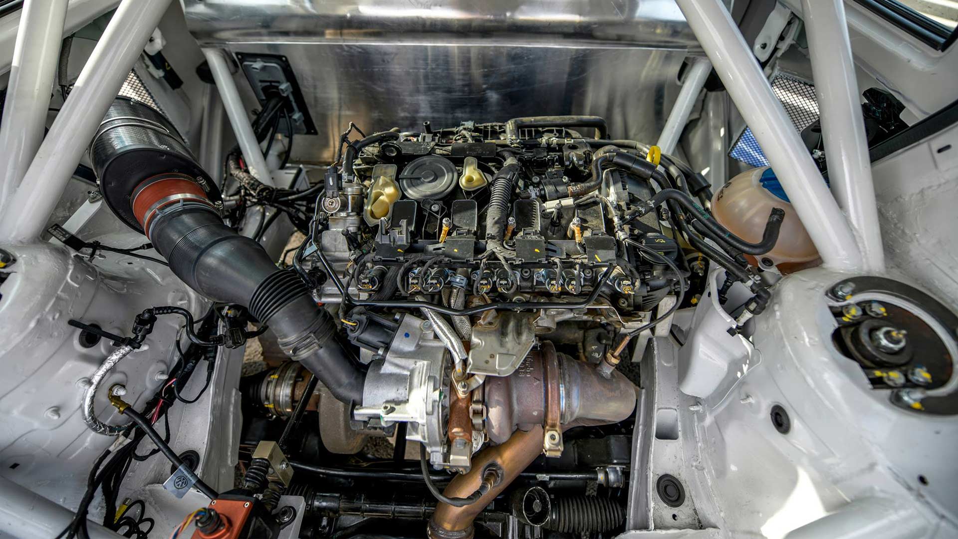 The Polo RX is built as a rear engine, rear-wheel drive car. The team started by creating the right mounts for the engine, gearbox and the suspension at the back of the vehicle. The intercoolers have been placed underneath the rear seats, meaning the fuel tank had to be moved to the front of the car – which probably explains its non-compliance to regulations. As we can see in the pictures, special ducts have also been created to channel fresh air to the engine and maintain the air flow.