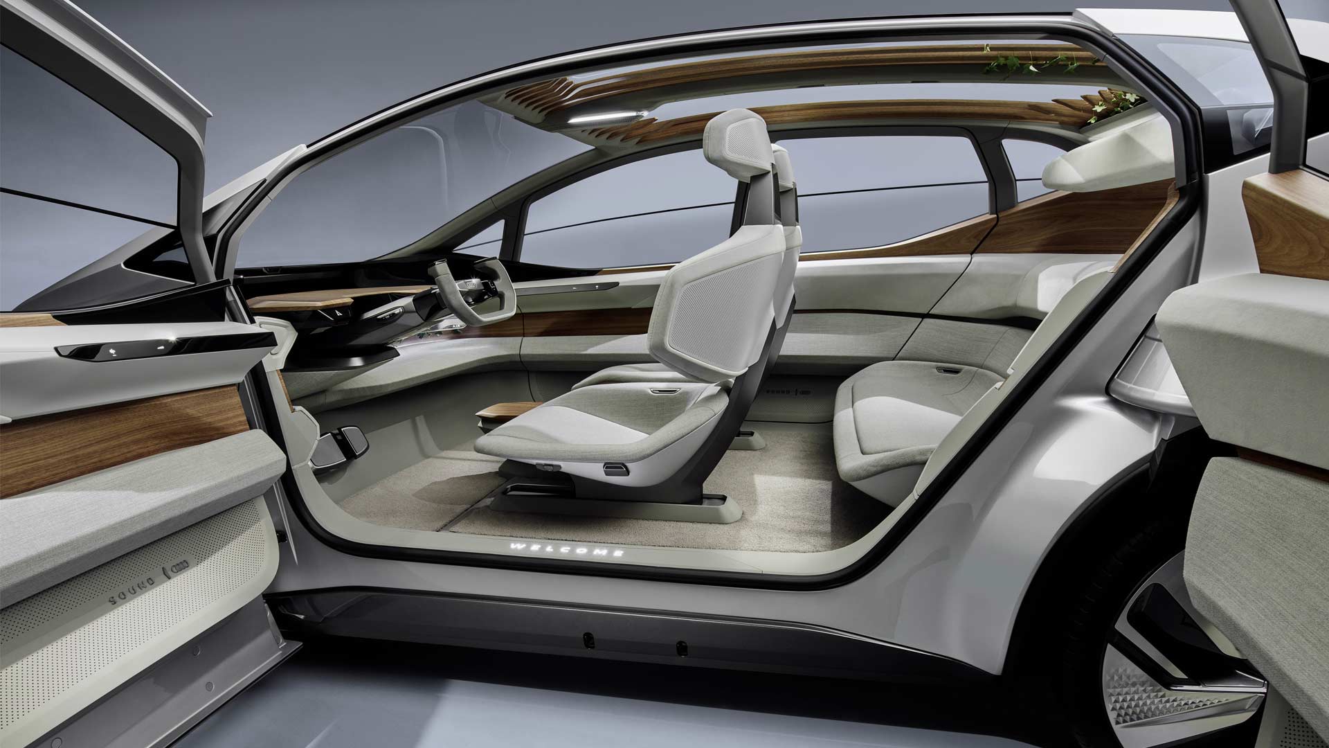 In addition, there are real plants to give occupants a feeling of proximity to the nature and also to improve air quality in the car at the same time. A filter technology prevents external odours from entering into the cabin of the AI:ME. Some of the materials used are made of recycled products.