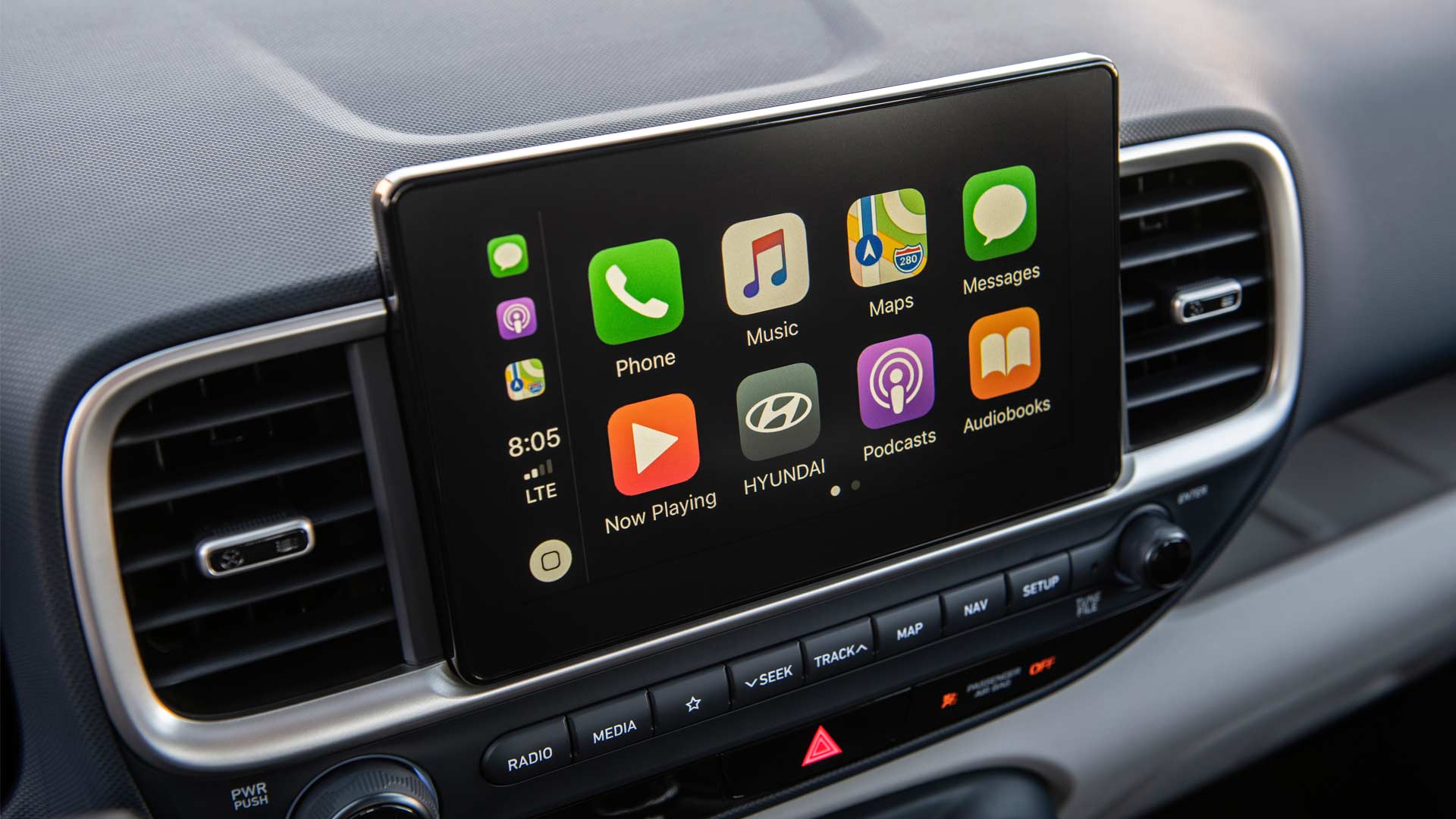 Features include an 8-inch touchscreen infotainment system with Apple CarPlay and Android Auto compatibility. For those who opt for navigation, free Real-Time Traffic is provided by HERE and free map updates are included via Hyundai MapCare for 3 years.