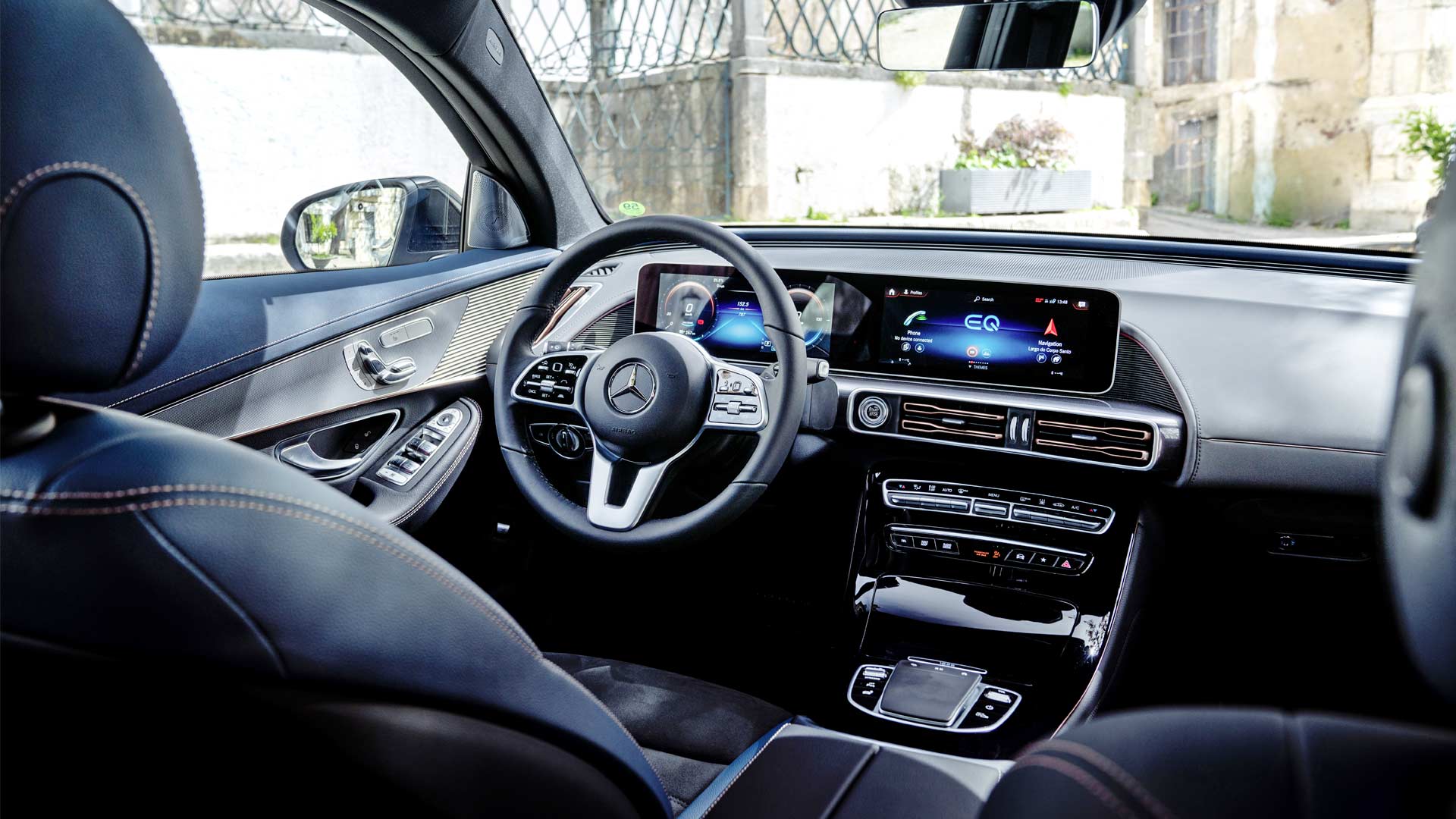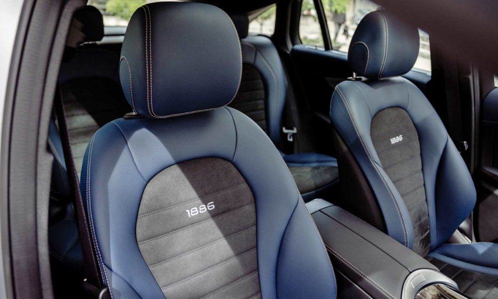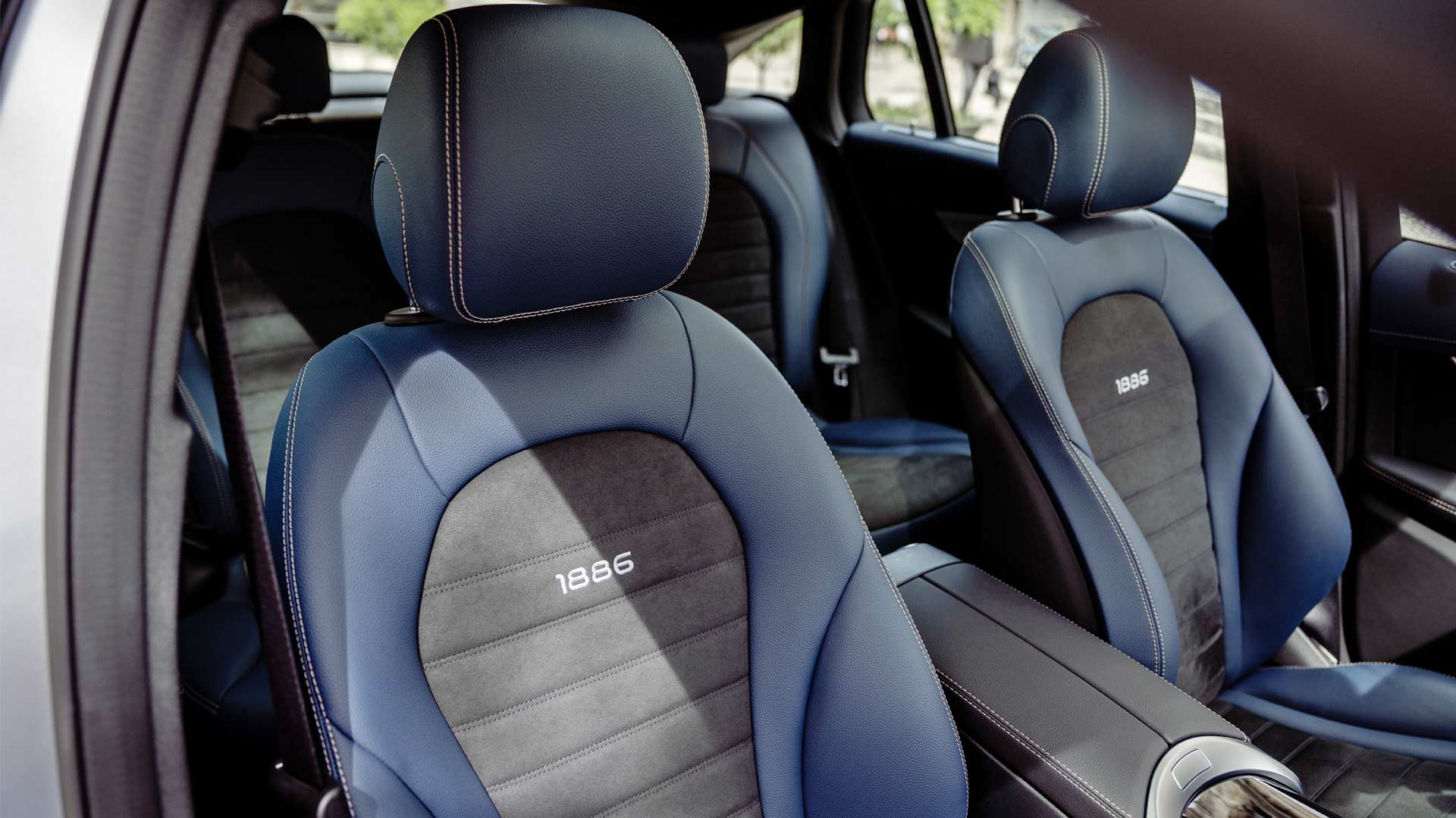 Inside, there are new seat designs with upholstery in Artico man-made leather and Dinamica microfibre in indigo blue and black. A special EQC Edition 1886 lettering is embroidered into the seat backrests. The lettering can also be found as a badge on the centre console.
