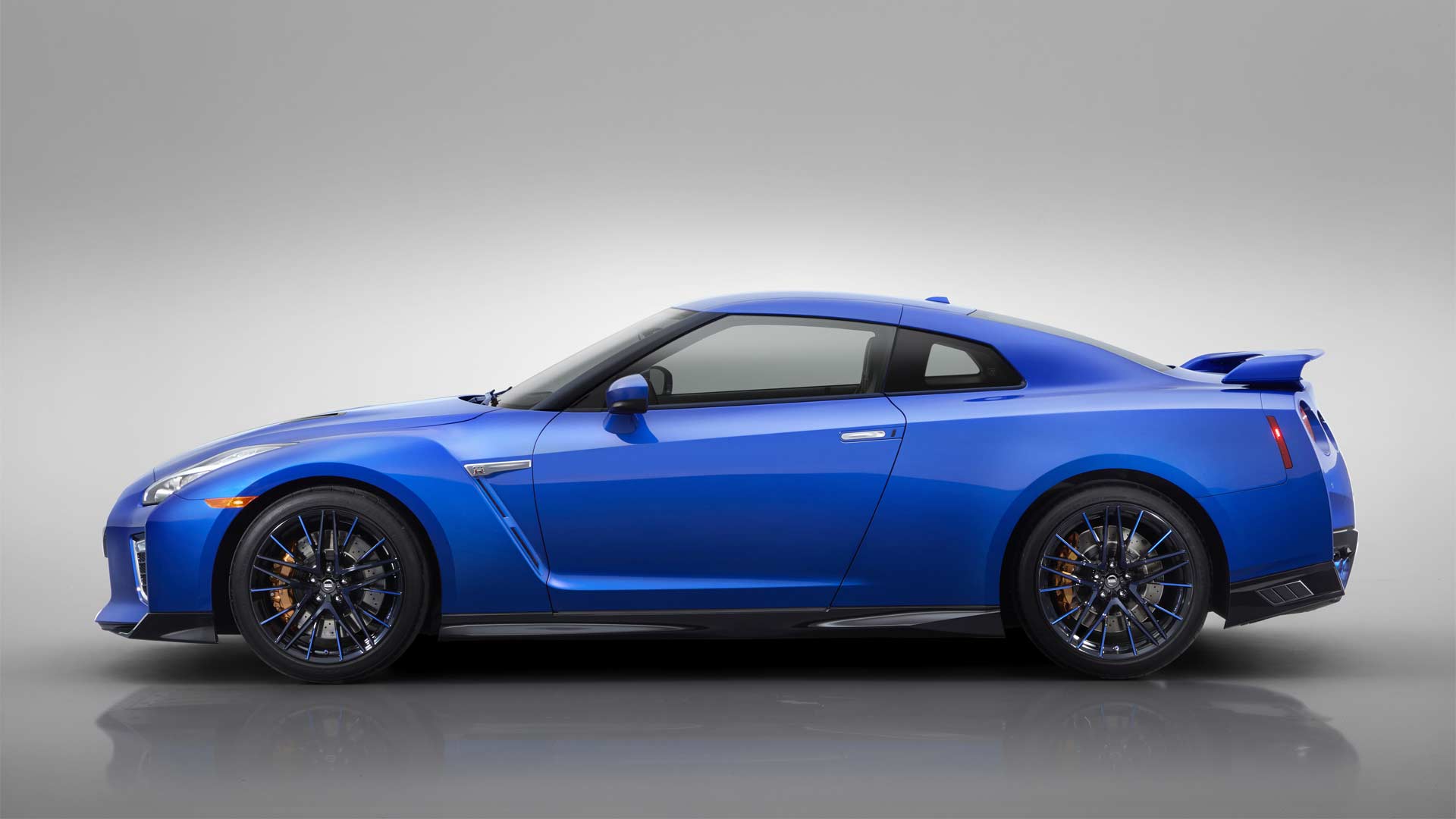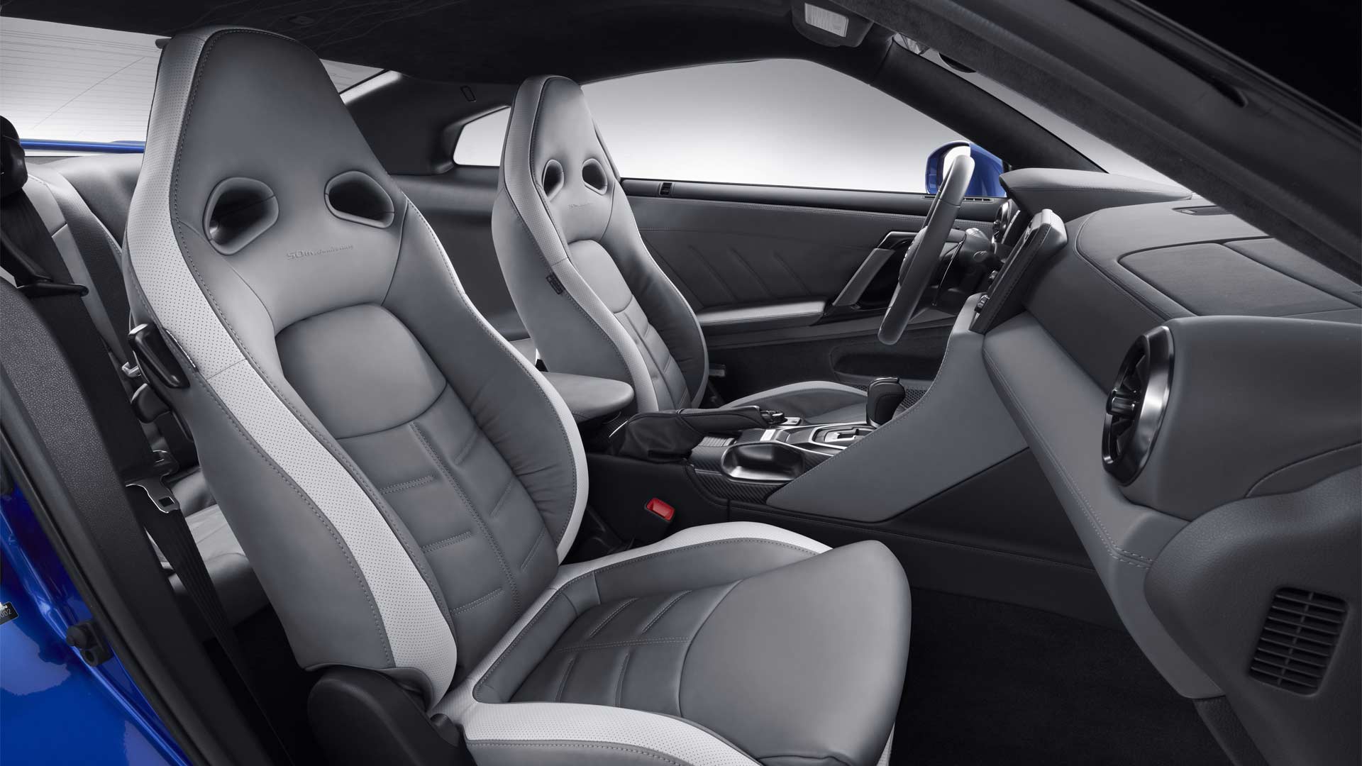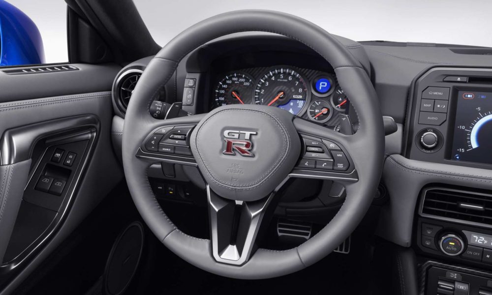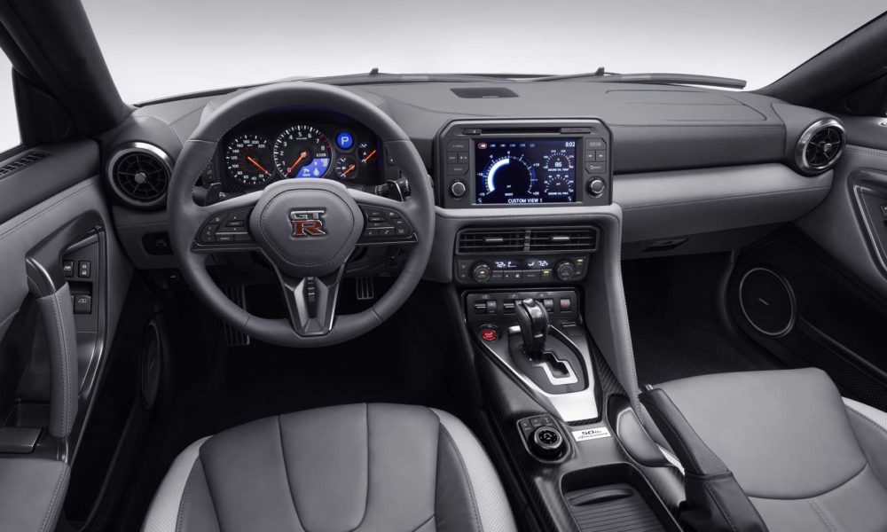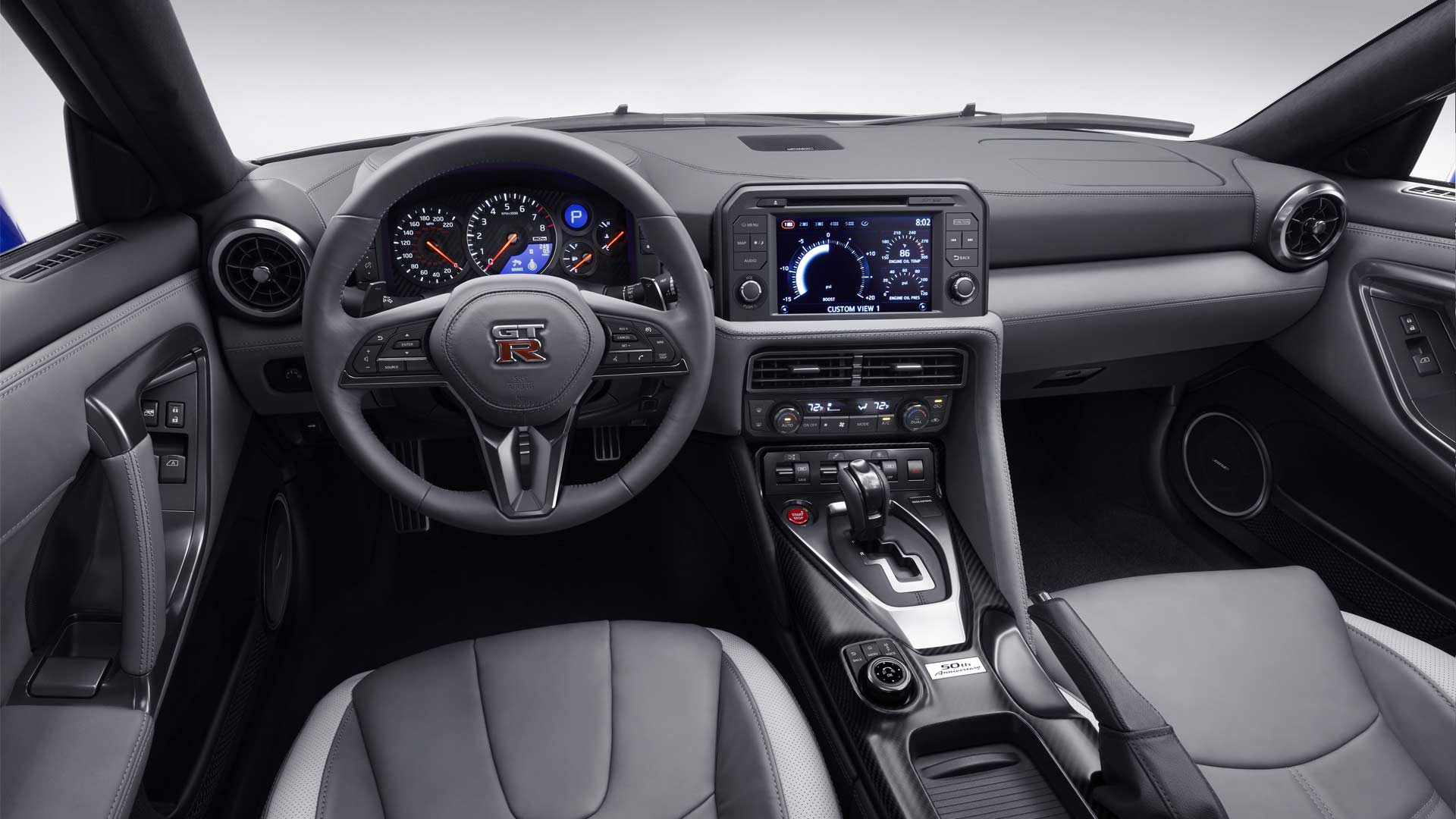 Inside, the 50th Anniversary Edition gets a special gray interior color scheme, which apparently is reminiscent of the atmosphere of the night sky after the twilight hour (the scheme is also available on select other 2020 GT-R models). Additional 50th anniversary features include a unique steering wheel and shift knob trim, special embossed seats, an Alcantara headliner with unique stitching, Alcantara-wrapped sun visors, and more.