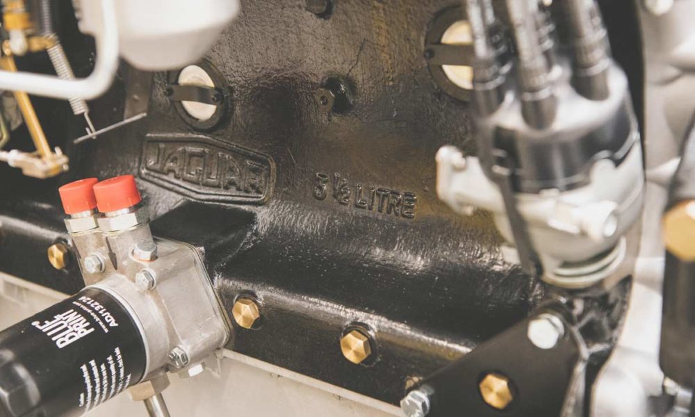 The 11-month project apparently took 2,700 hours to complete. The in-line 6-cylinder engine was rebuilt over five and a half months, with the final objective to use the car for racing. The power output has gone up from the original 180 bhp to 225 bhp, and enhanced durability for higher speeds, with items like the core plugs featuring steel bracing so that they don’t dislodge during high-performance driving, Jaguar said. The exhaust system has also been upgraded with dual pipes.
