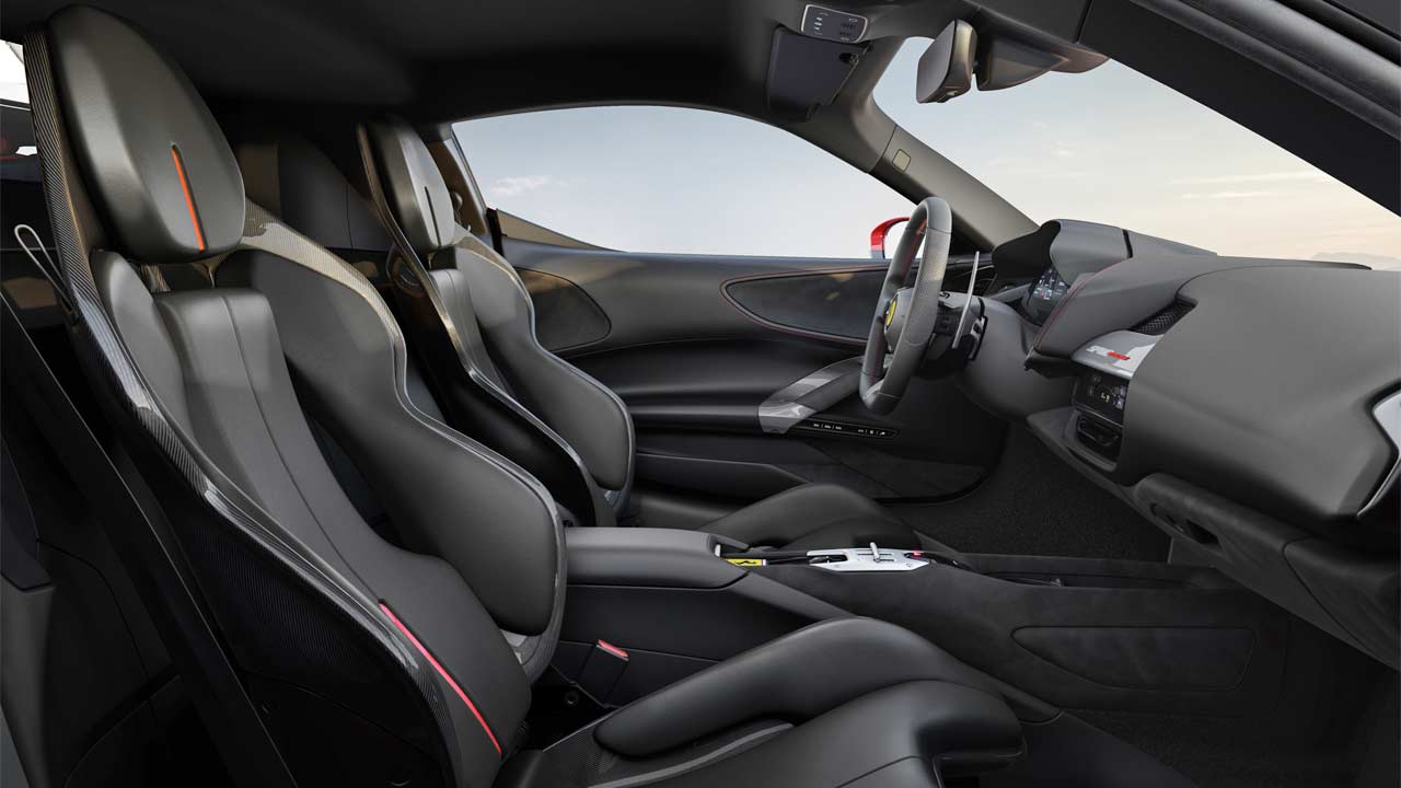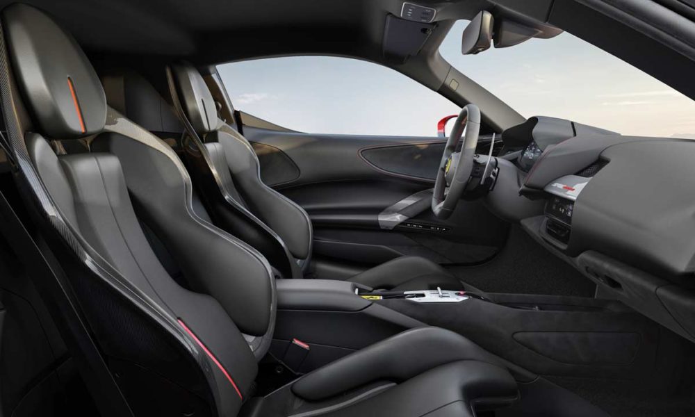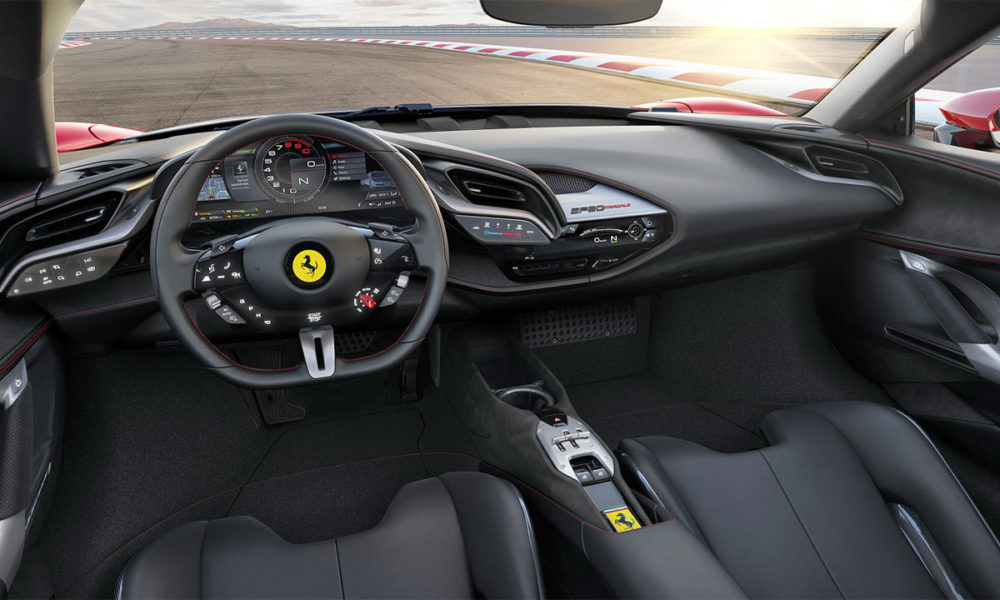 As for the gearbox, Ferrari says that the new gear ratios and improved transmission efficiency yield a significant reduction in fuel consumption in urban and motorway driving (-8% in the WLTP cycle) without having to compromise on performance. Apparently, there is even a 1% improvement in efficiency on the track. The gearbox’s overall weight is 7% lower; that figure rises to 10% with the elimination of reverse gear. Meaning, the front electric motors perform the task of reversing the vehicle. The new clutch’s performance is 35% higher; can handle up to 1,200 Nm (885 lb-ft) of torque.