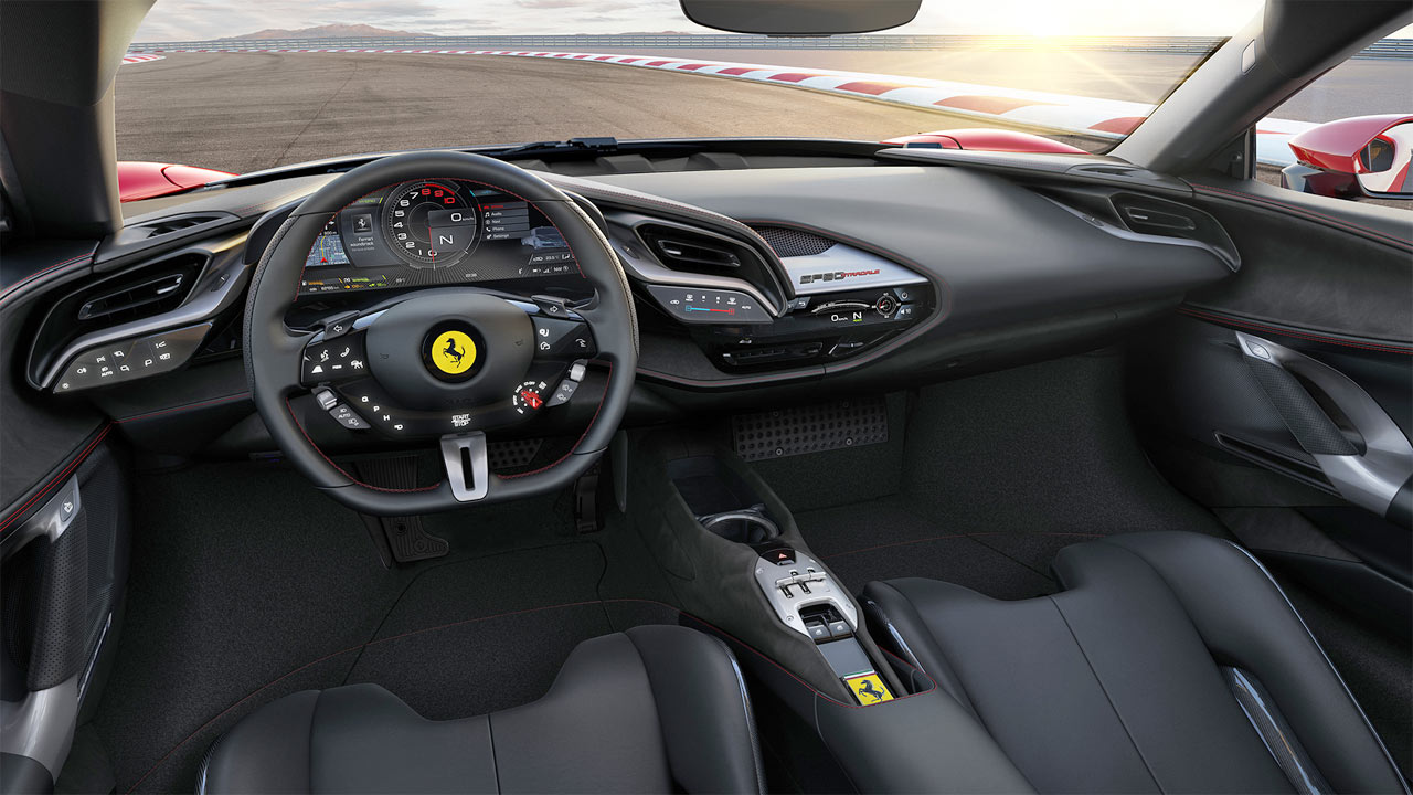 The SF90 Stradale also sees the debut of a new keyless technology which will gradually be introduced across the rest of the range, personalised with the model’s name. Thanks to a special compartment in the central tunnel, it becomes an integral part of the car’s styling.