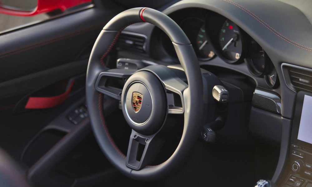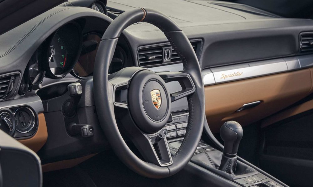 More interesting part is that the Speedster gets a 6-speed manual transmission that features an auto-blip function which according to Porsche, precisely and independently compensates differences in engine speed between the gears when downshifting through automatic throttle blips. Auto-blip can be activated at any time, also independently from the chosen PASM (Porsche Active Suspension Management) variable damping system setting. A mechanical rear differential lock with asymmetric locking action rounds off sporty power transmission.