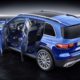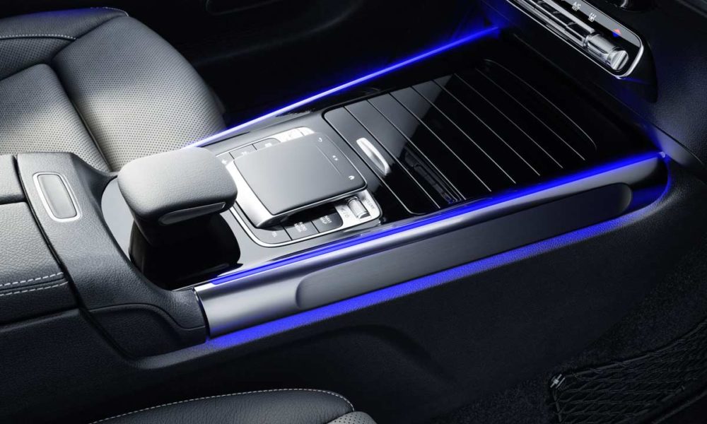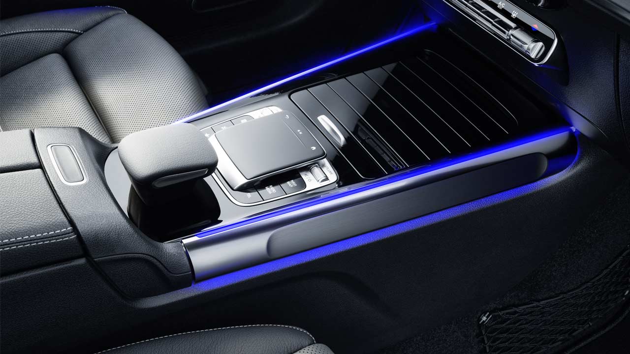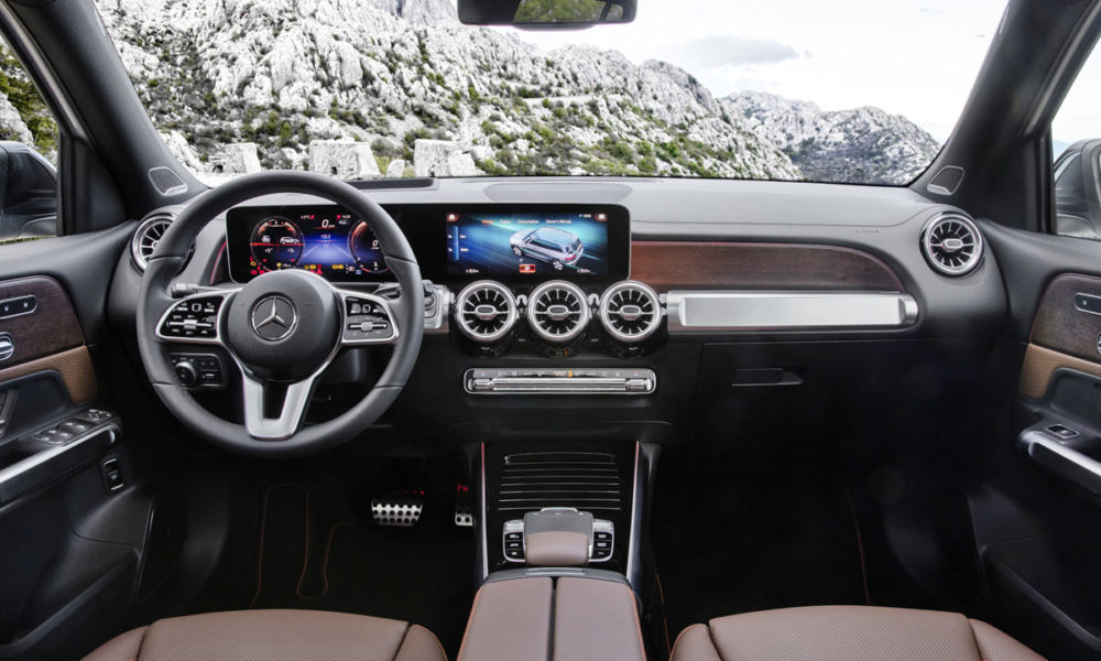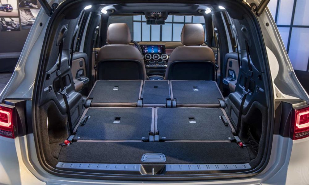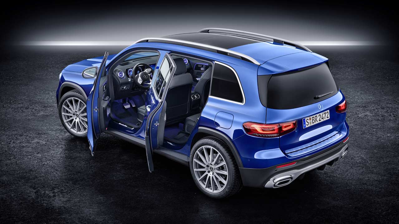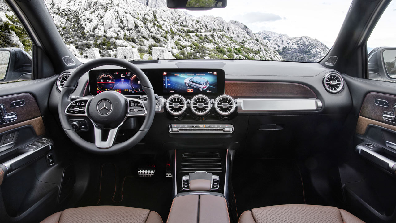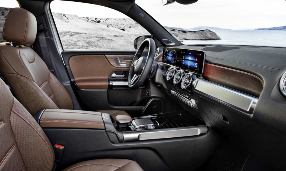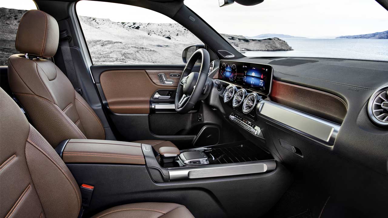 While the interiors look all the same with the widescreen MBUX system and turbine-like air vents, the usage of materials lend the GLB’s cabin a unique look. There are tubular elements in machined finish, and horizontal grab handles on the door panels to underline the SUV character. Options also include a full-color head-up display.