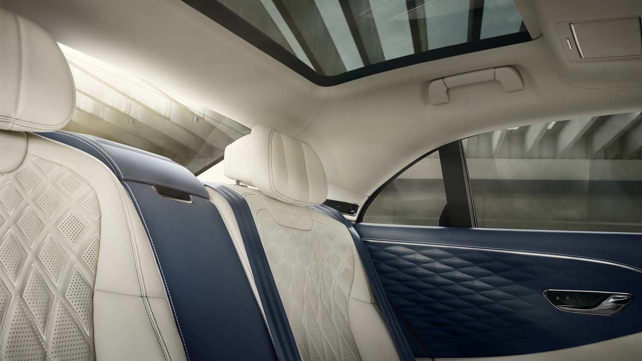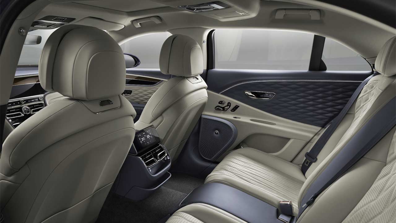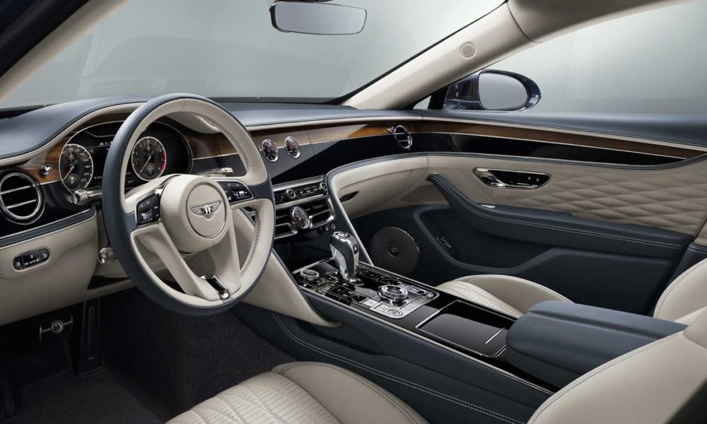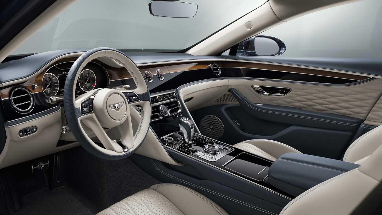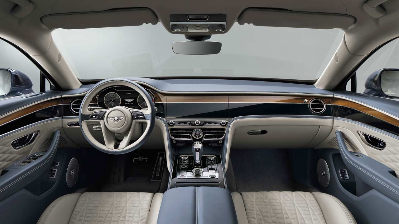 The interior layout is similar to that of the Continental GT with a horizontal veneer that flows across the dashboard and into the doors, giving the car a luxury yacht look from the inside. The Bentley Rotating Display is present here too which rotates to reveal a 12.3-inch touchscreen when the engine start button is pressed.