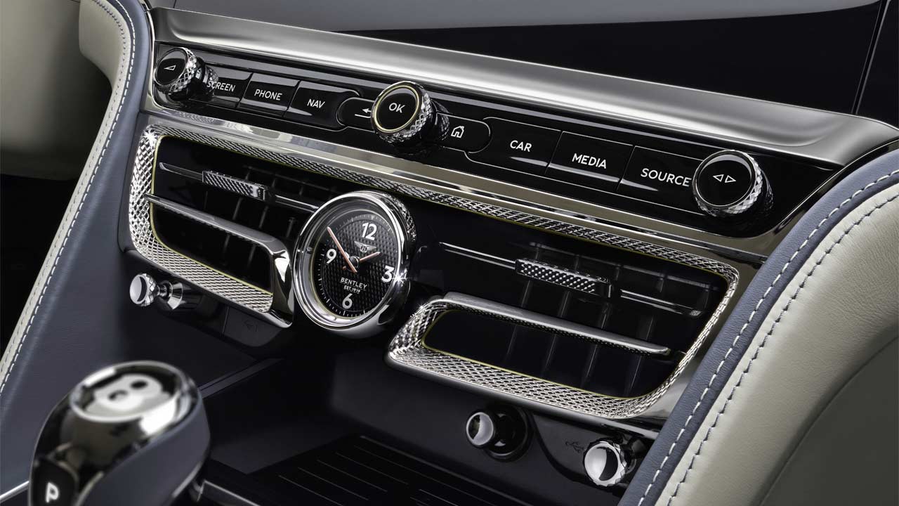 Diamond knurling adorns the rotary switches and is also available on the air vents and clock. In order to produce the decorative detail, a new software algorithm had to be created to work with the complex curves of the ducts, Bentley said.