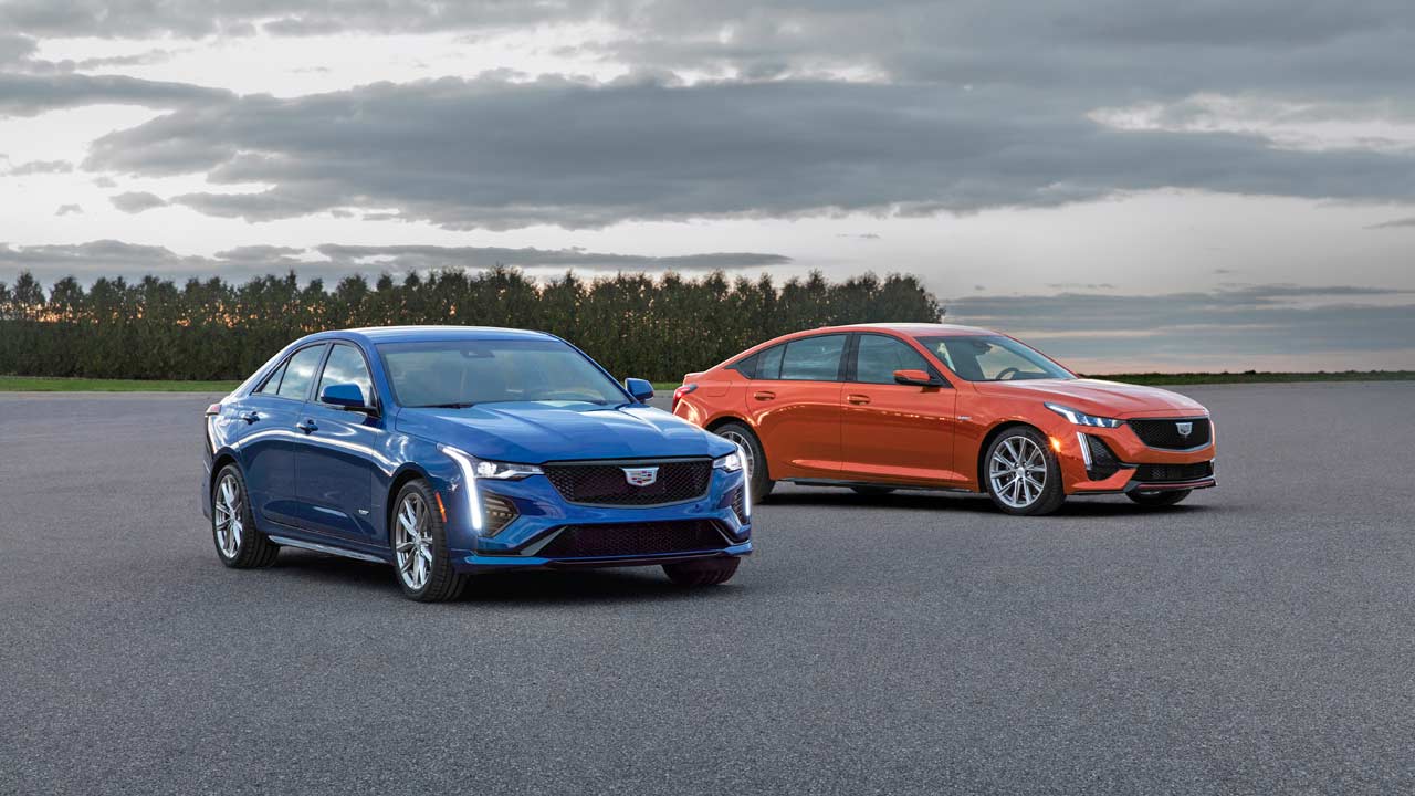 Cadillac has added two more sedans to its V-Series performance sub-brand. The first-ever CT4-V (Blue one in the photos) and CT5-V (Orange) share standard technologies and are available either as RWD or AWD variants.