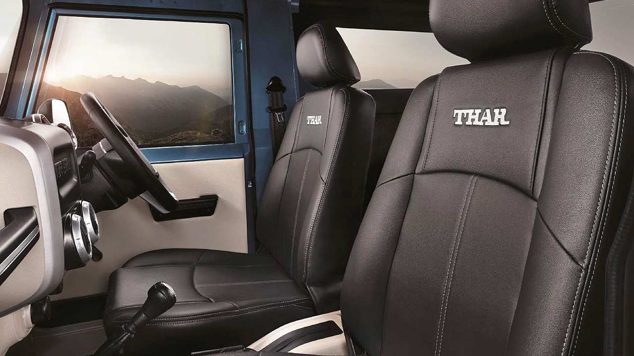 As the name would suggest, the Thar 700 is limited to 700 units. Features of this special edition include a new, available Aquamarine color in addition to Napoli Black, decals on the bonnet and side, black finished grille, silver finish on the front bumper center, 5-spoke alloy wheels, leatherette upholstery with Thar logo on the inside, and ABS as well.