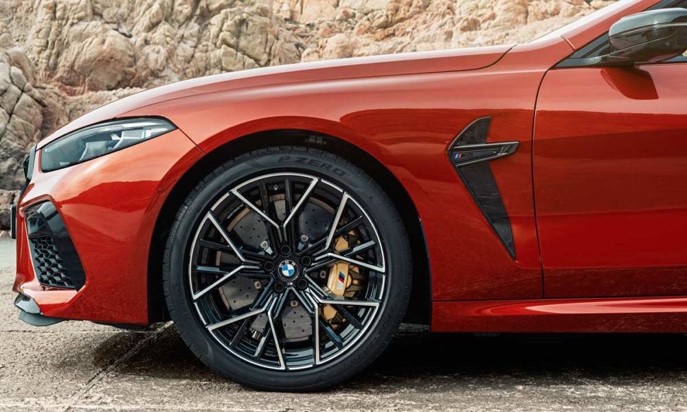 The pictures here showcase only the Competition variants. Compared with the standard 8 Series, the M8’s grille is finished in Black Chrome, gills in Black Chrome, mirror caps in high gloss black, and 20-inch forged bicolor light-alloy wheels. The optional M Carbon exterior package includes air intake surrounds, mirror caps, and gills.