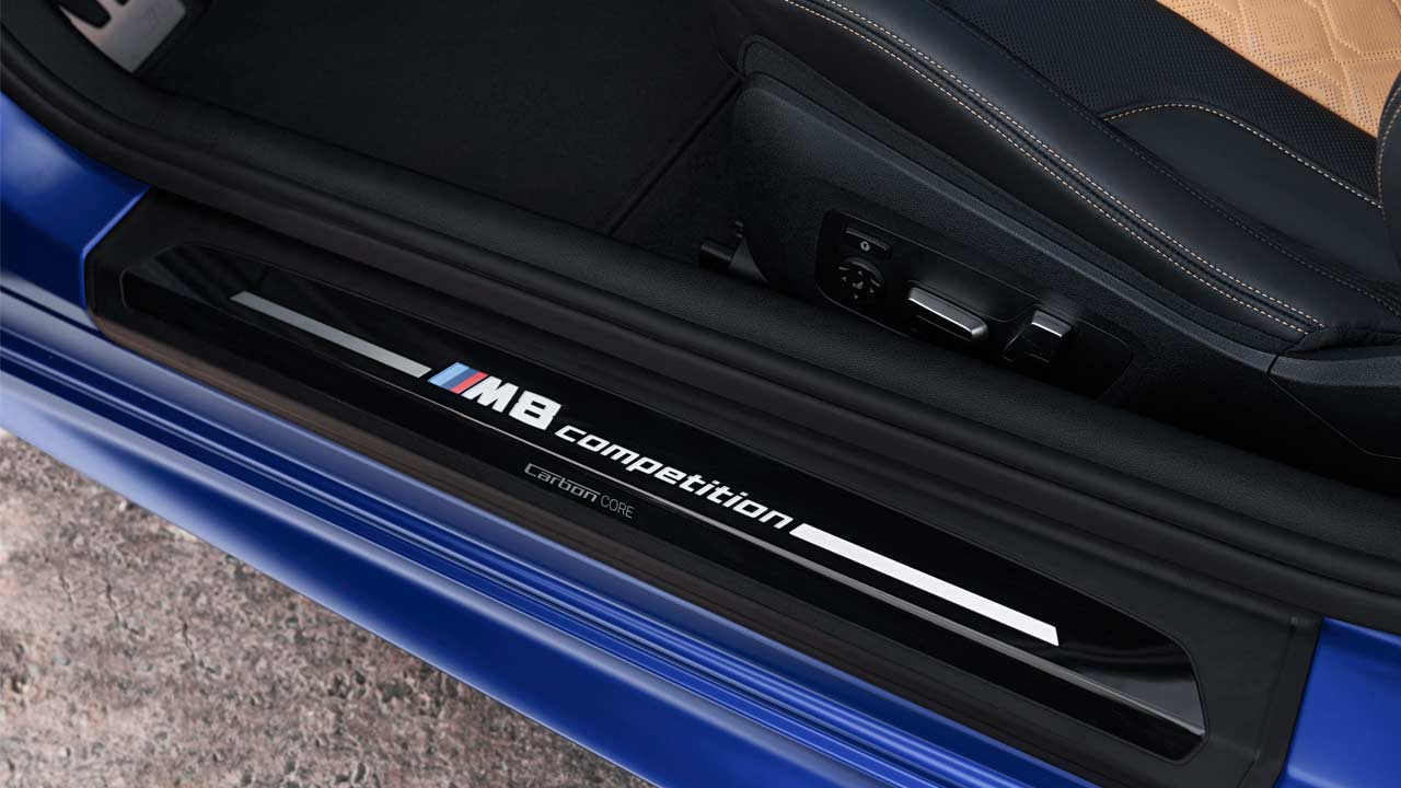 Interiors too have been spiced up with M leather steering wheel with red M buttons, new shift lever, M-specific graphics on the instrument cluster and infotainment screen, M Sport seats with multi-way electric adjustment with memory function, M seat belts, carbon fibre trim strips, and leather/Alcantara bicolor appointments. Also part of the standard features are Head-Up Display with M-specific readouts, Driving Assistant, Parking Assistant, and ambient lighting.