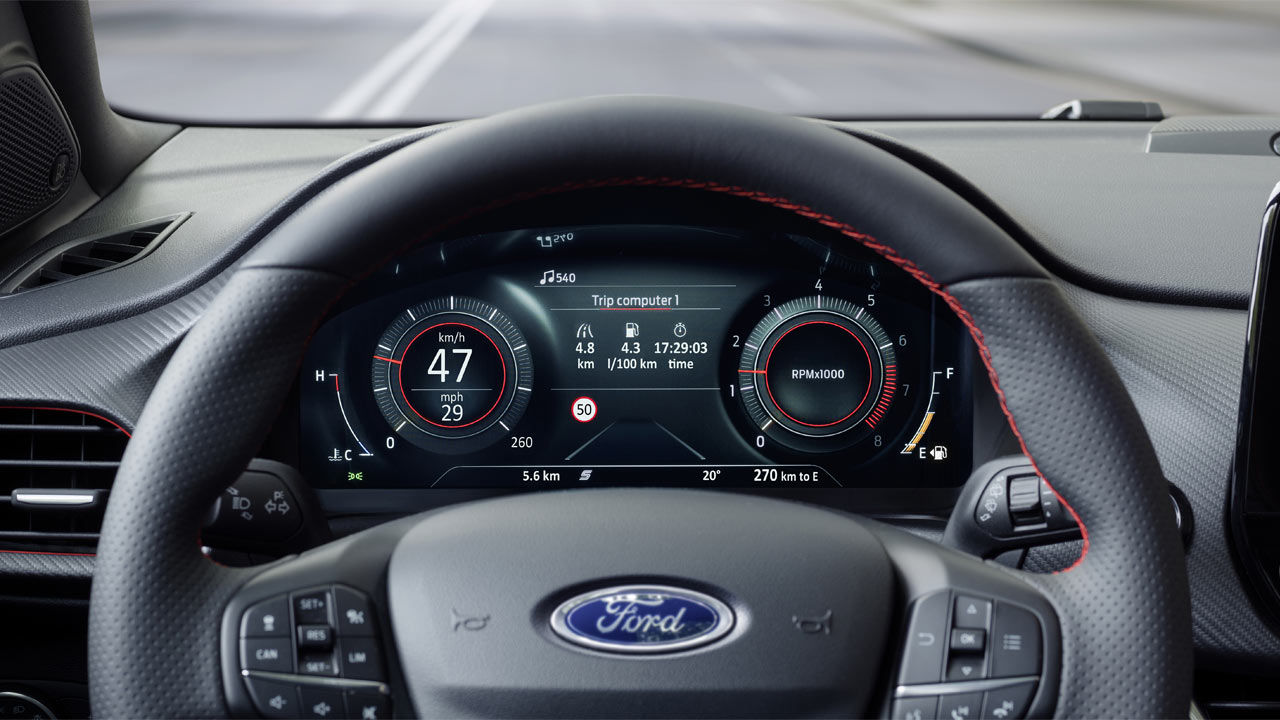 Safety and assistance features include a suite of Ford Co-Pilot360 technologies that utilize 12 ultrasonic sensors, three radars and two cameras positioned around the car. The Puma features Adaptive Cruise Control with Stop & Go, Speed Sign Recognition, Lane Centring, Lane-Keeping System, Blind Spot Information System (BLIS), Cross Traffic Alert, Road Edge Detection, Pre-Collision Assist with Pedestrian Detection, Post-Collision Braking technology (to reduce the impact of a potential secondary collision), Evasive Steering Assist, and Active Park Assist with Perpendicular Parking as well.