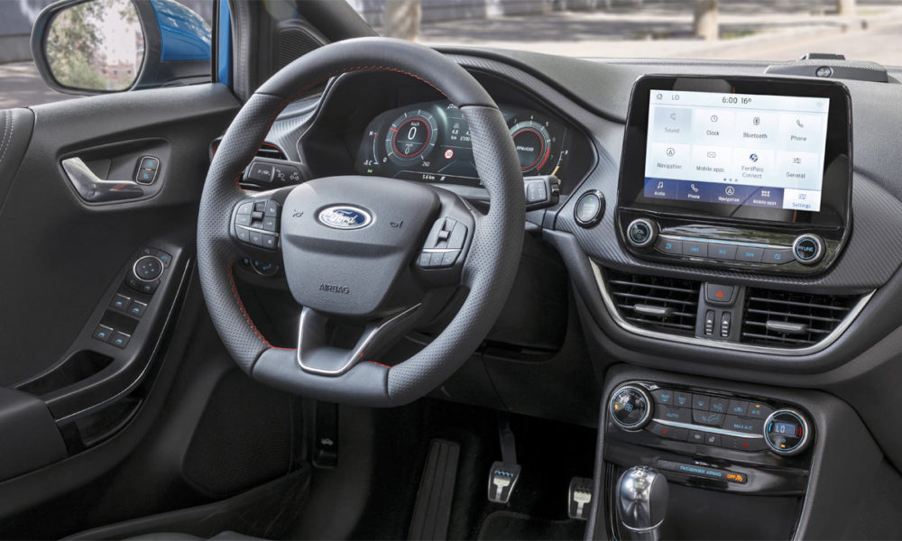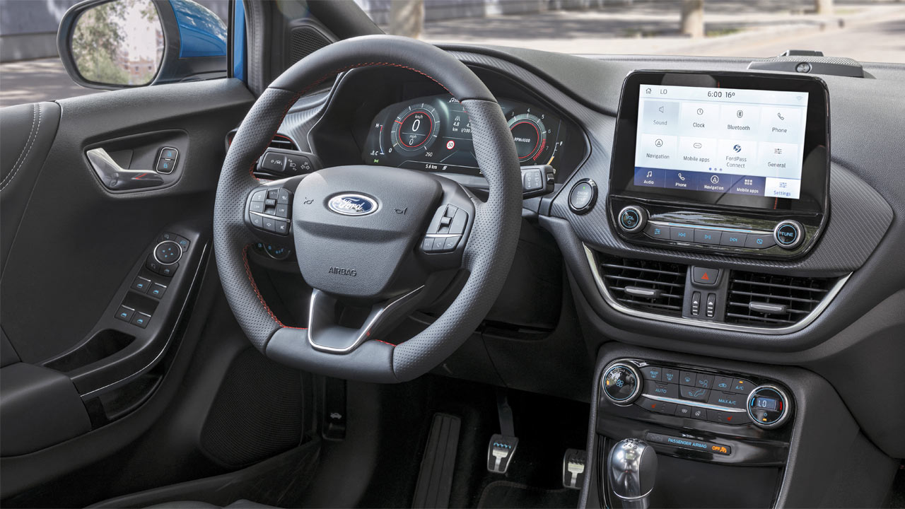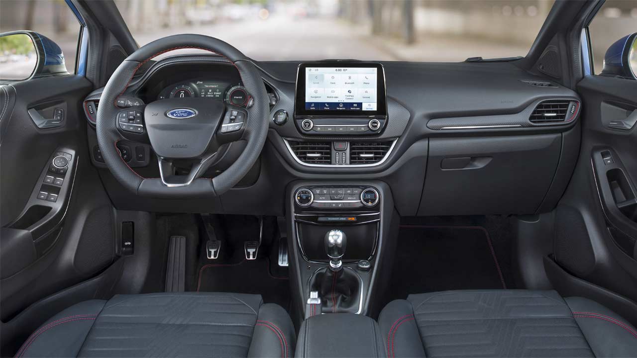 The interior layout is equally seductive as well with the usage of premium-looking materials and textures. The ST‑Line features a flat-bottomed steering wheel and signature red stitching – also available on the optional partial leather seats. Alloy pedals, aluminium gear shifter and black headliner further add to the sporty character.